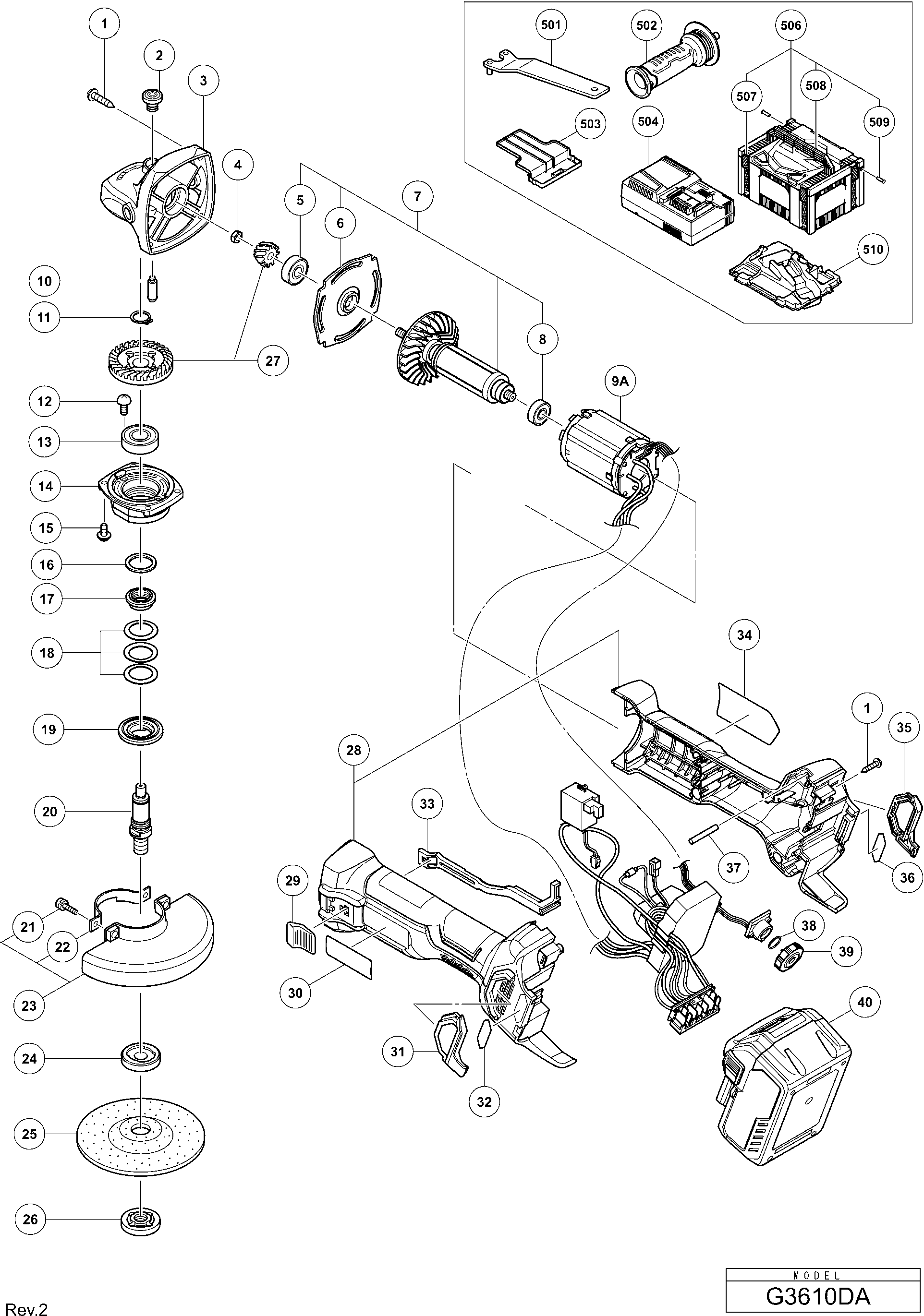 Lista de las piezas de repuesto de Hikoki G3610DA