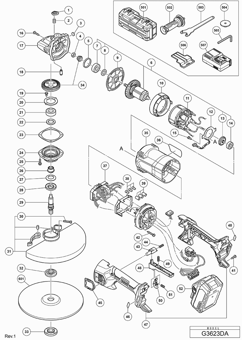 Lista de las piezas de repuesto de Hikoki G3623DAWGZ