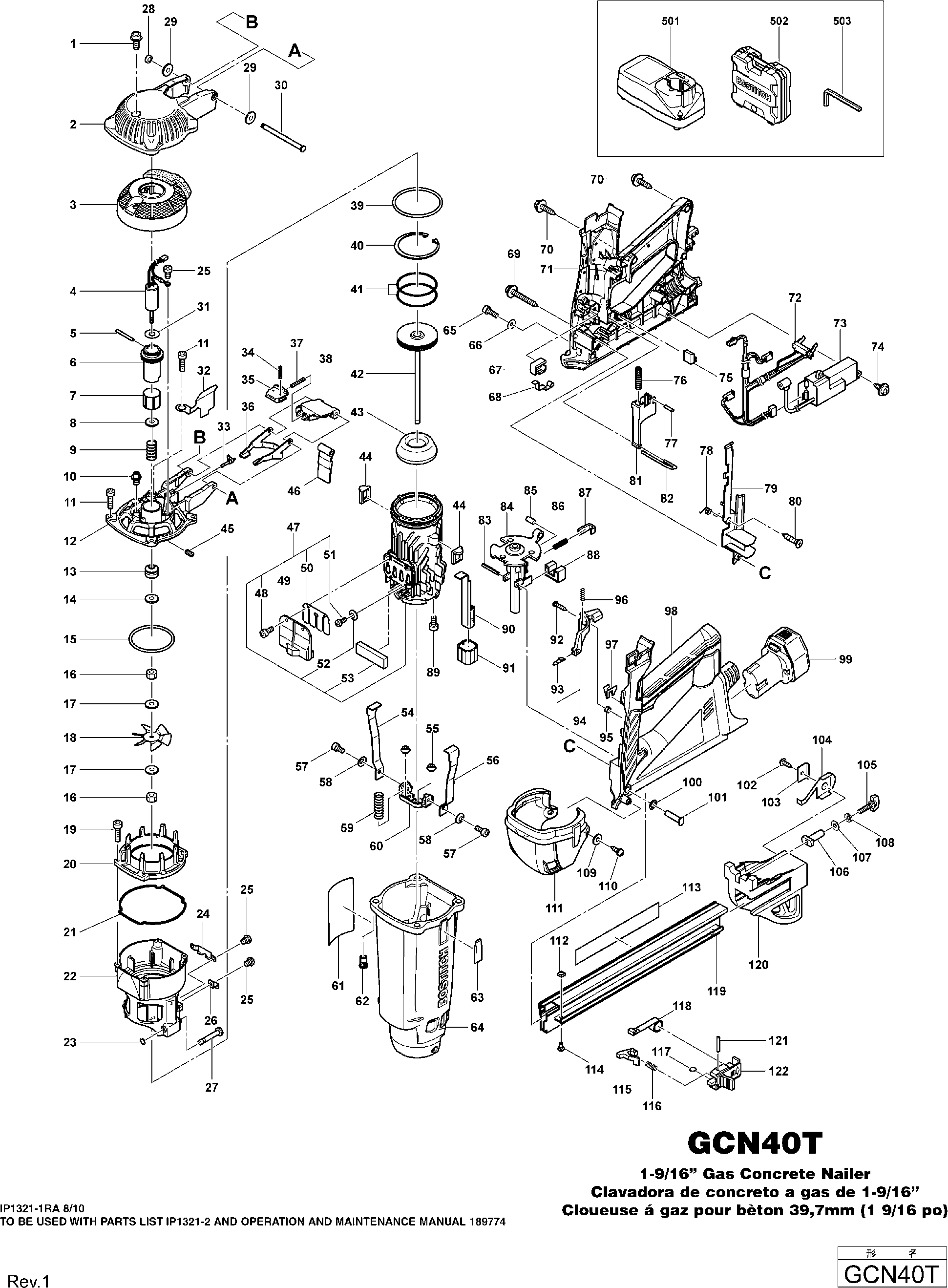 Lista de las piezas de repuesto de Hikoki GCN40T