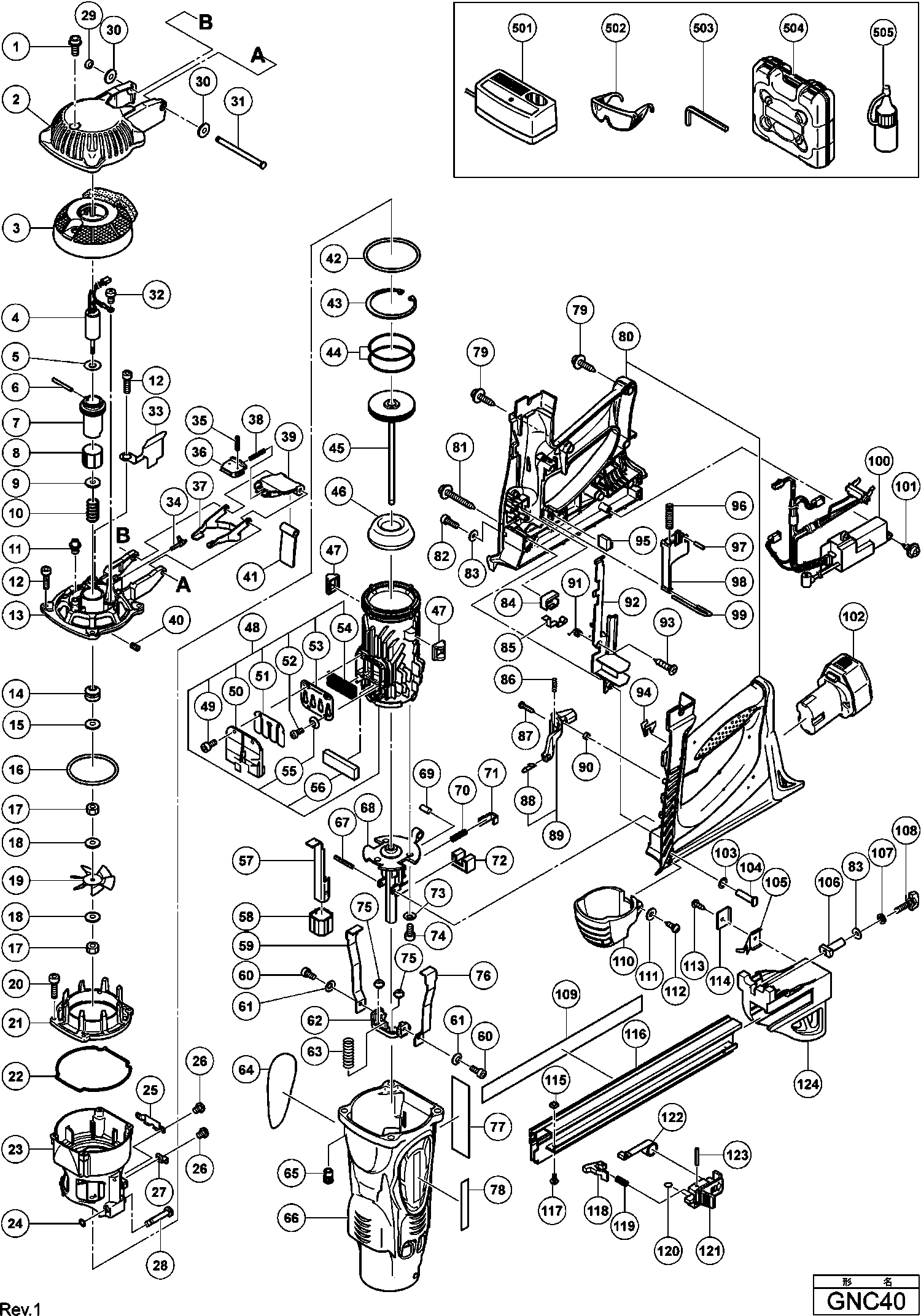 Lista de las piezas de repuesto de Hikoki GNC40