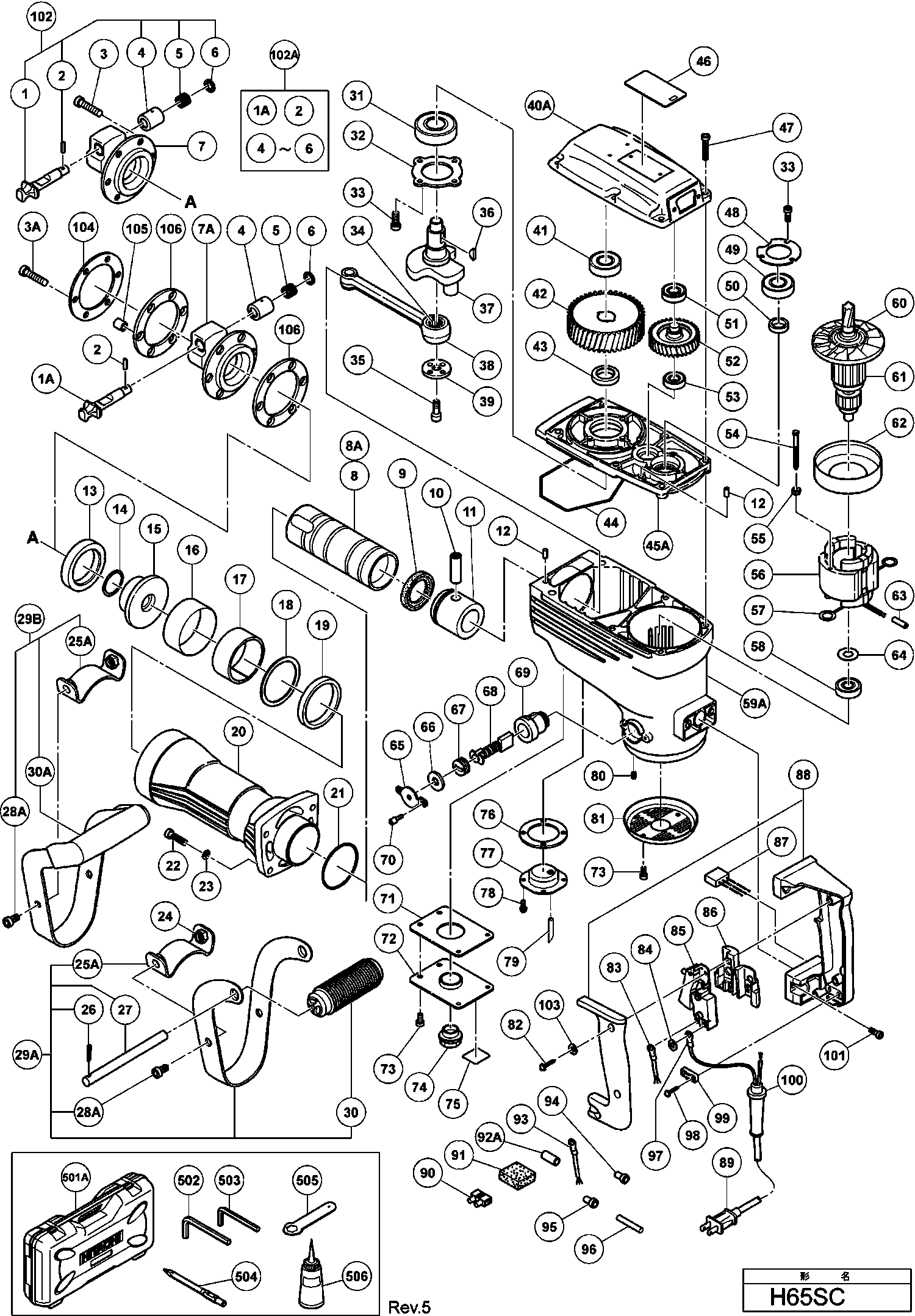 Aquí encontrará todas las piezas y dibujos técnicos disponibles de 'Hikoki H65SC'. Desde aquí podrá pedir todas las piezas deseadas directamente. Para muchas piezas de repuesto, es necesario pasar un pedido al fabricante. Dependiendo de la marca, el plazo de entrega puede variar entre una y cuatro semanas. Toda la información que tenemos está en nuestro sitio web. No podremos aconsejarle sobre lo que necesita hasta que entregue la máquina para su reparación. Tenga en cuenta lo siguiente a la hora de cursar su pedido: