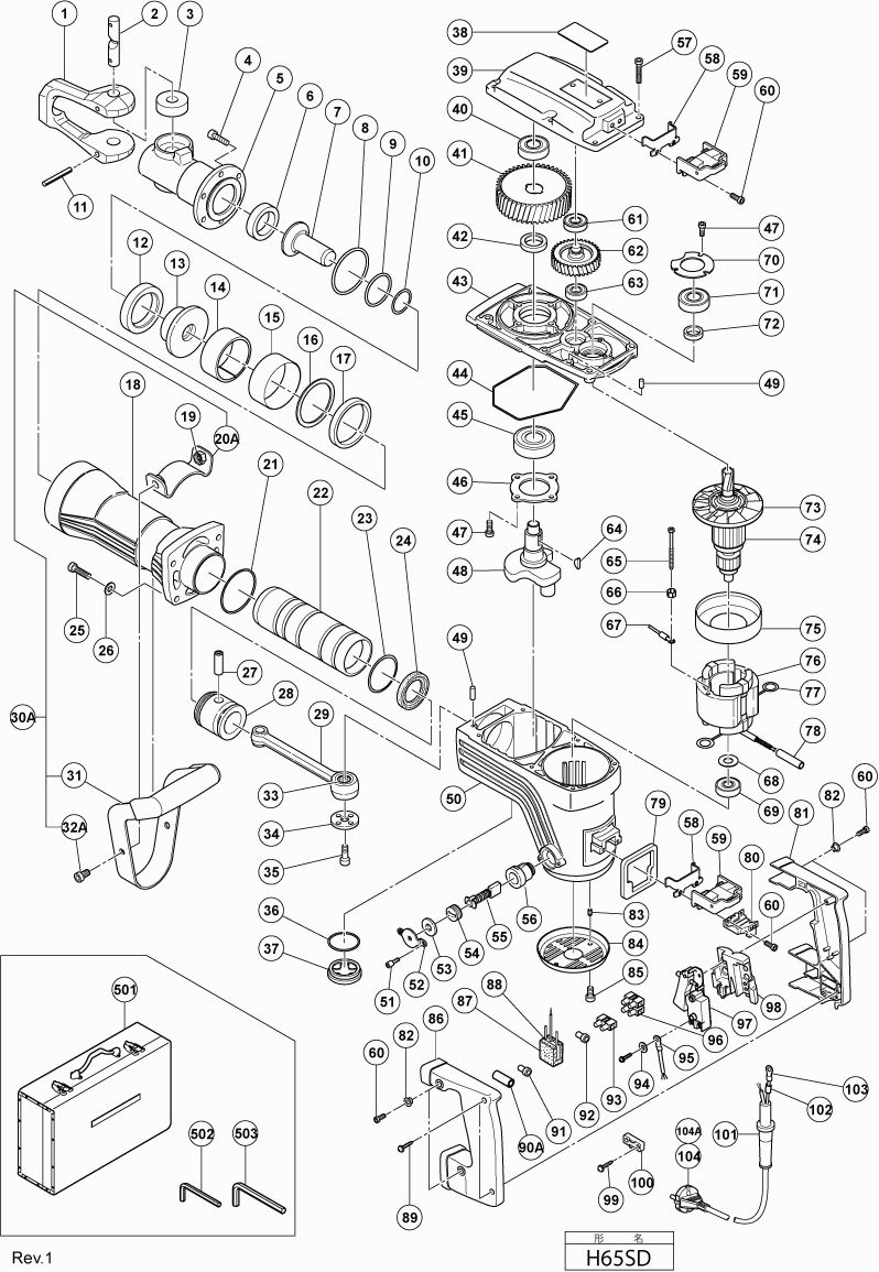 Lista de las piezas de repuesto de Hikoki H65SD