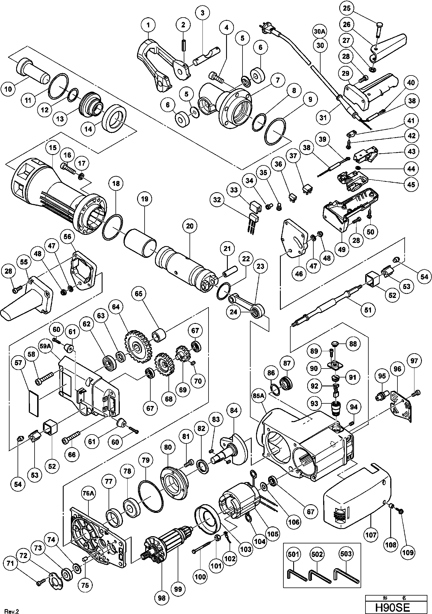 Lista de las piezas de repuesto de Hikoki H90SE