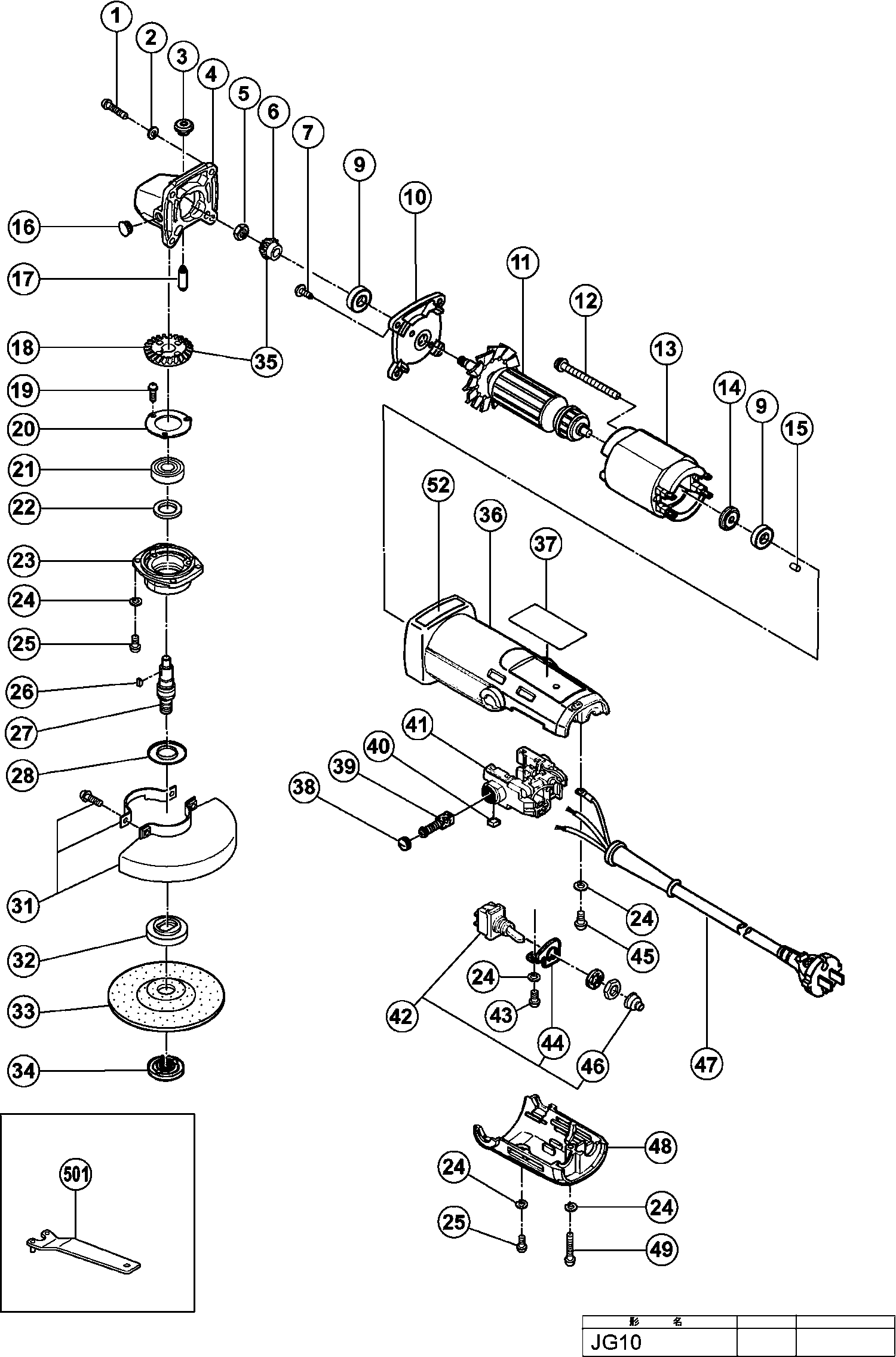 Lista de las piezas de repuesto de Hikoki JG10