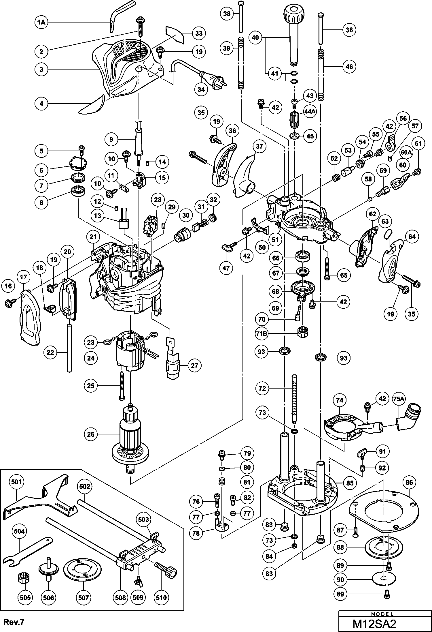 Lista de las piezas de repuesto de Hikoki M12SA2
