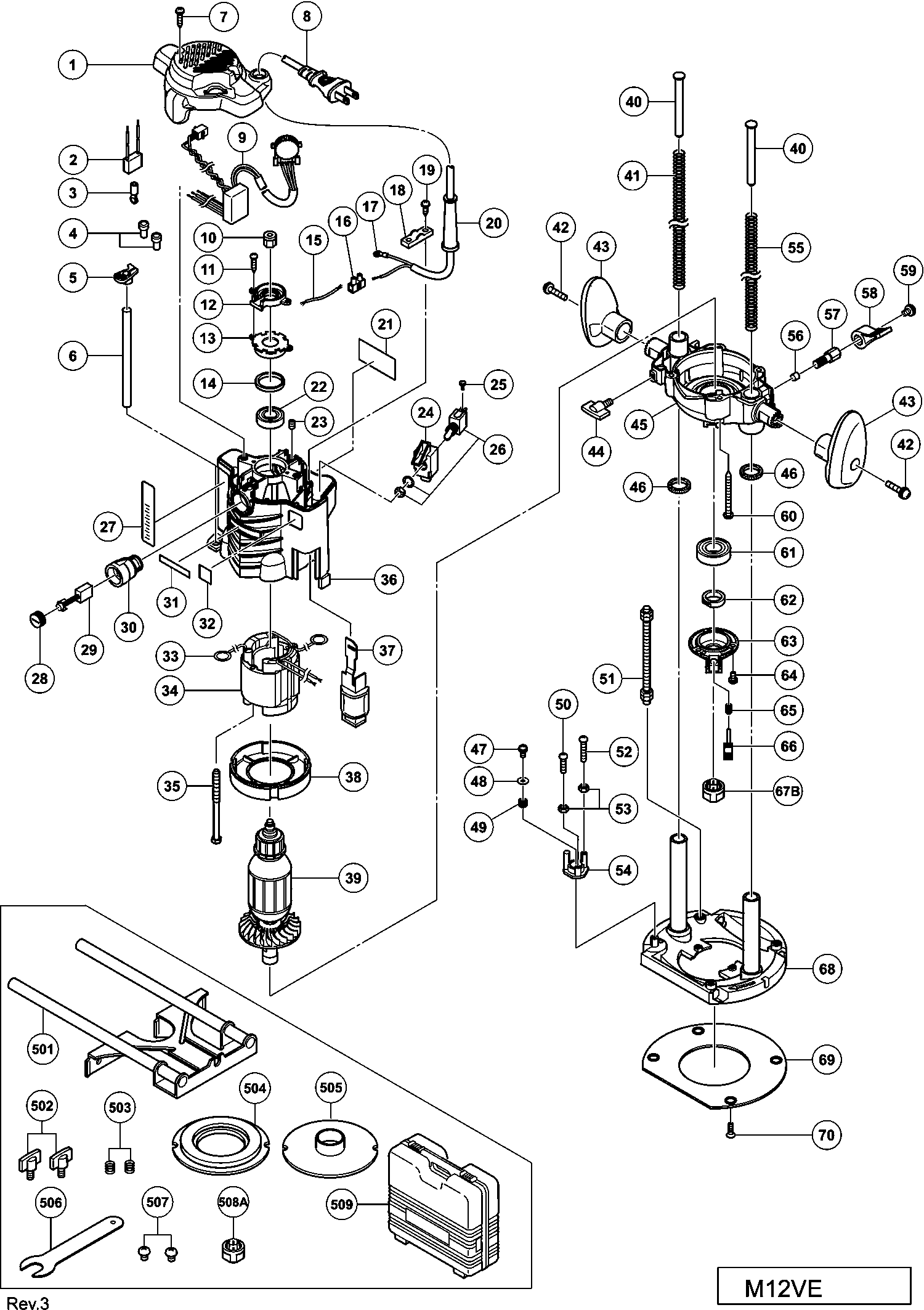 Lista de las piezas de repuesto de Hikoki M12VE