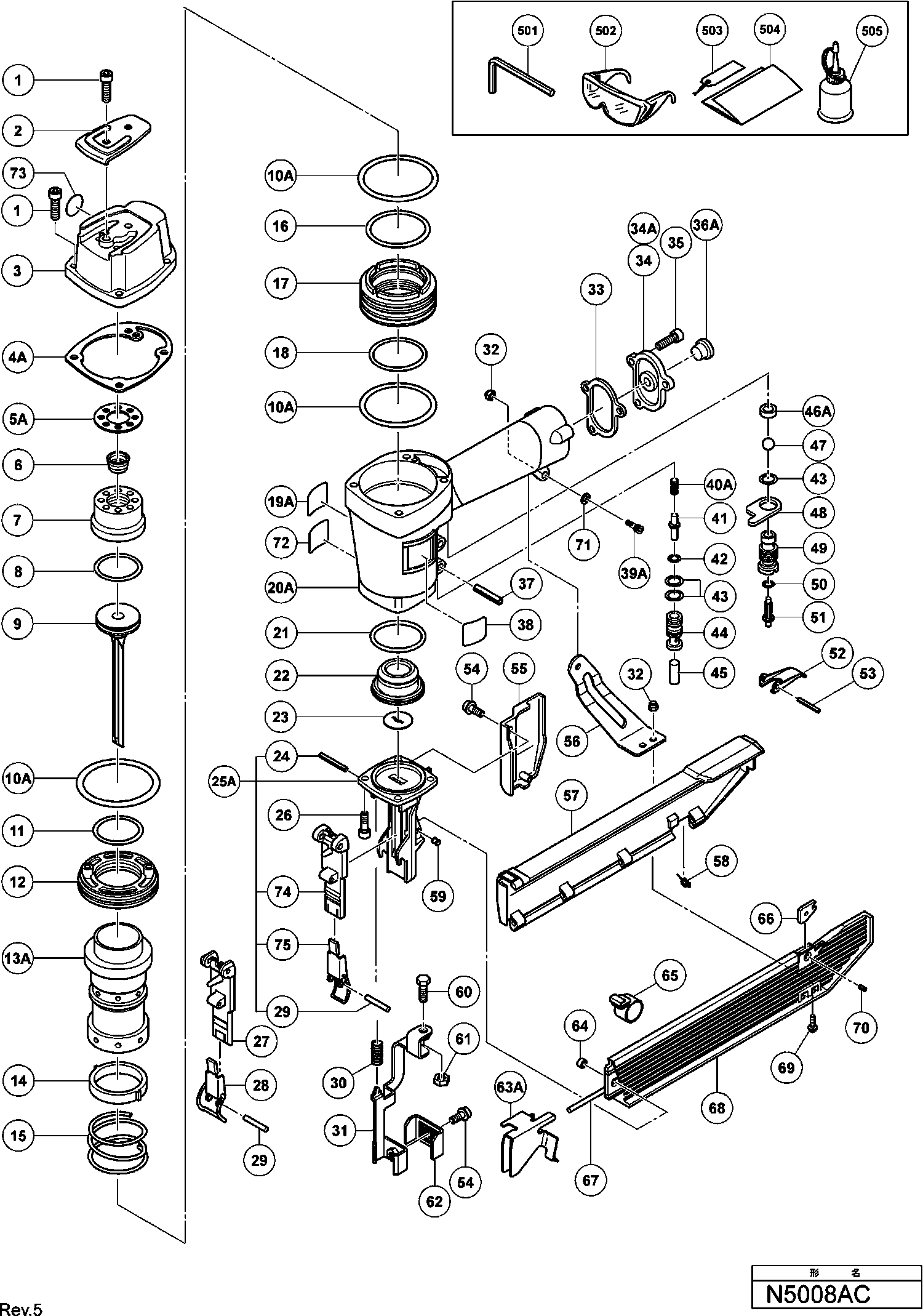 Lista de las piezas de repuesto de Hikoki N5008AC