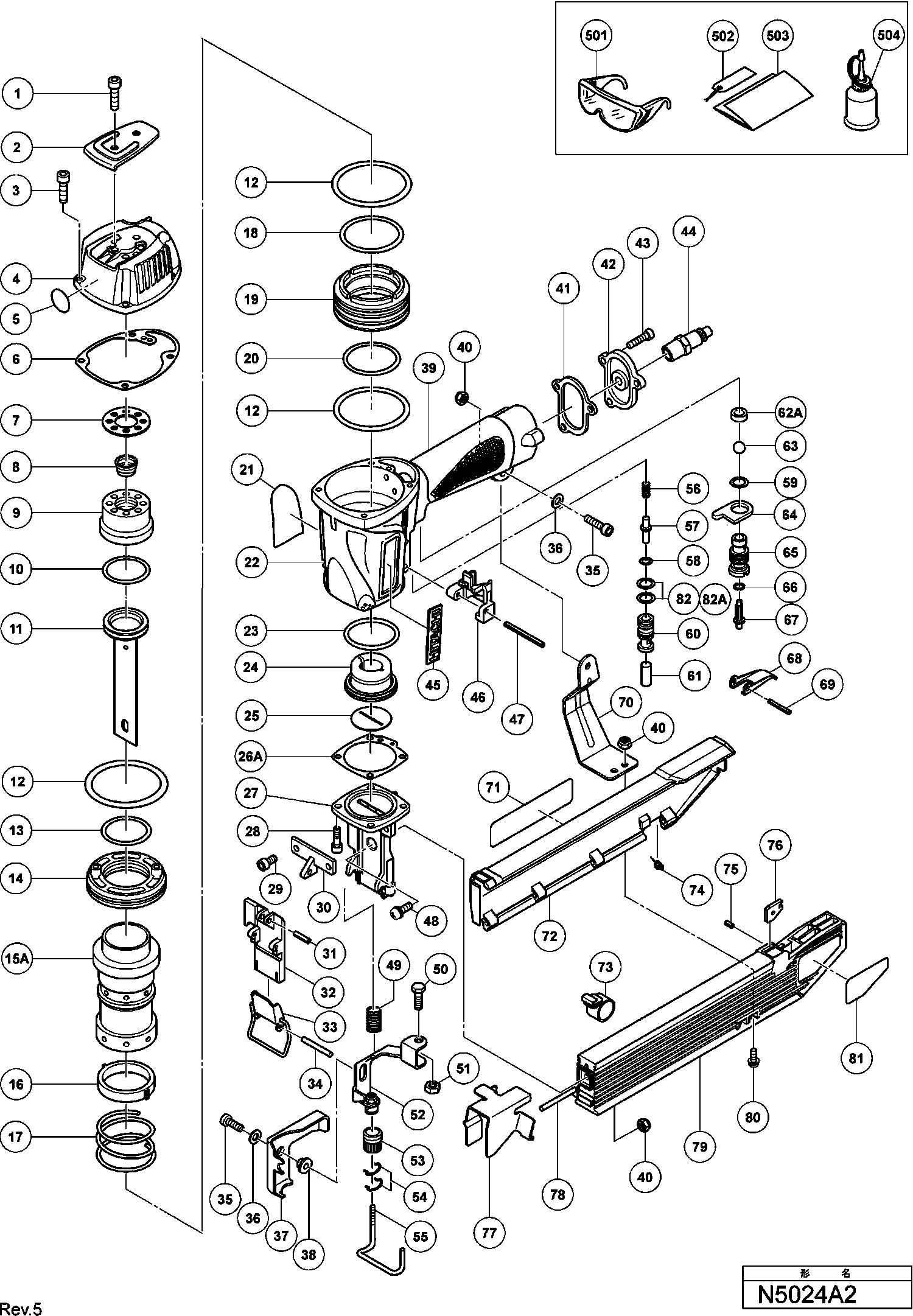 Lista de las piezas de repuesto de Hikoki N5024A2