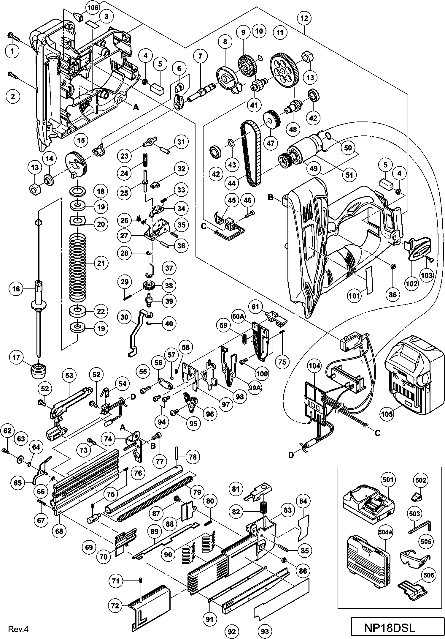 Lista de las piezas de repuesto de Hikoki NP18DSL