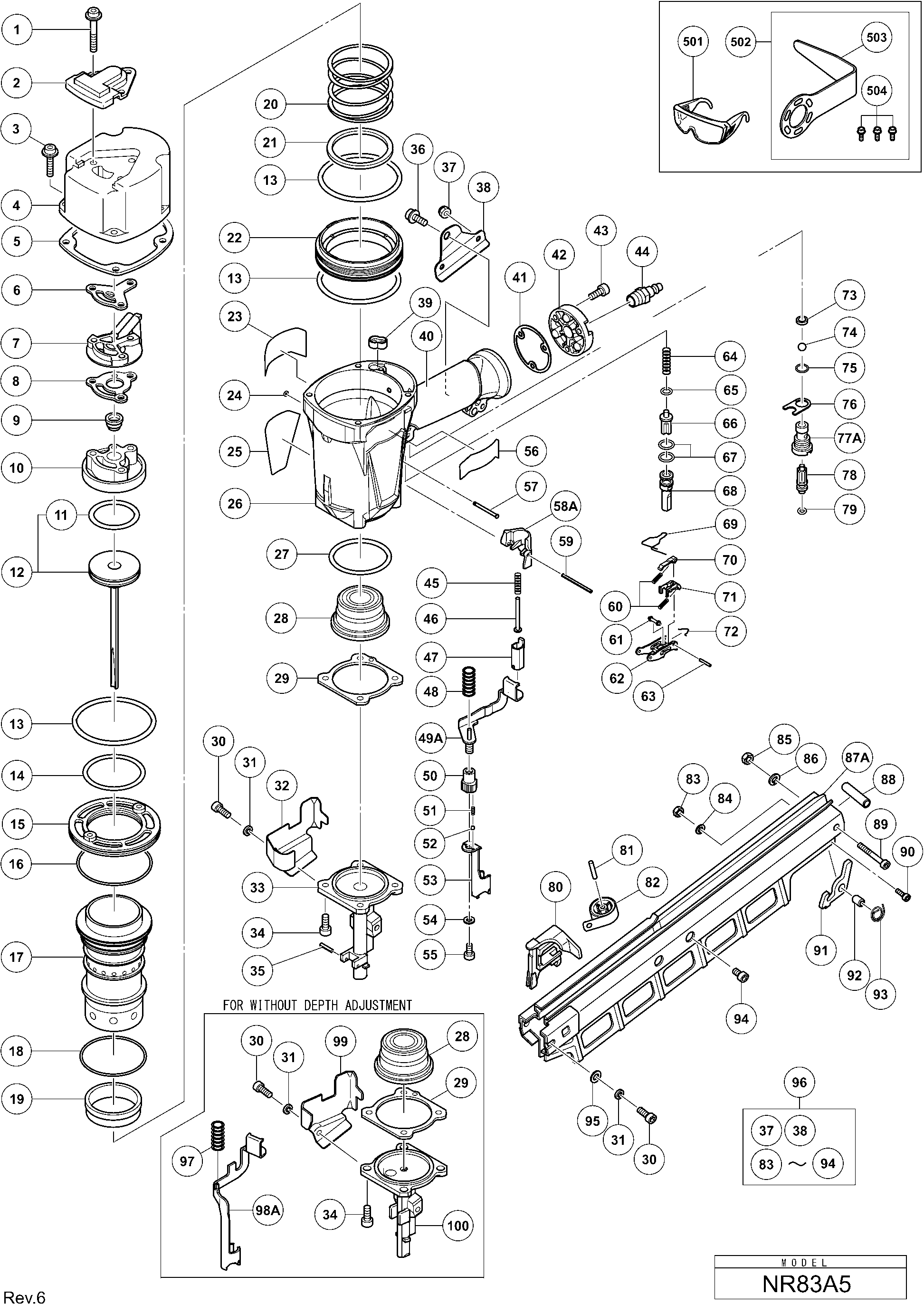 Lista de las piezas de repuesto de Hikoki NR83A5