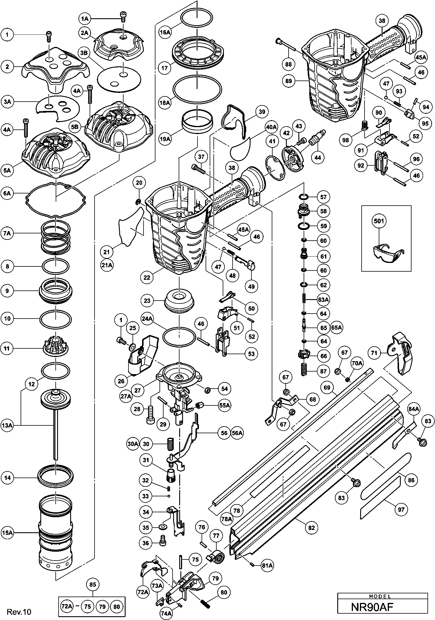 Lista de las piezas de repuesto de Hikoki NR90AF