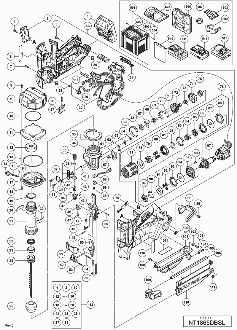 Lista de las piezas de repuesto de Hikoki NT1865DBSLW4Z