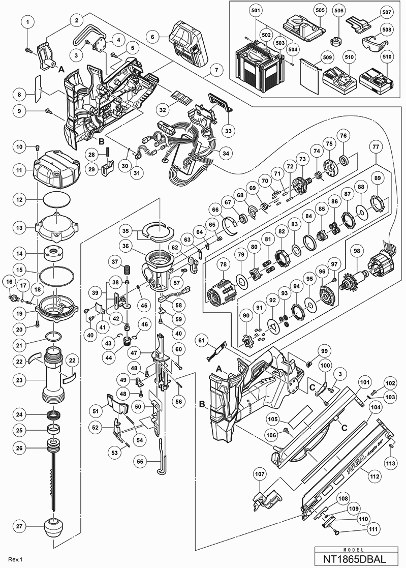 Aquí encontrará todas las piezas y dibujos técnicos disponibles de 'Hikoki NT1865DMA'. Desde aquí podrá pedir todas las piezas deseadas directamente. Para muchas piezas de repuesto, es necesario pasar un pedido al fabricante. Dependiendo de la marca, el plazo de entrega puede variar entre una y cuatro semanas. Toda la información que tenemos está en nuestro sitio web. No podremos aconsejarle sobre lo que necesita hasta que entregue la máquina para su reparación. Tenga en cuenta lo siguiente a la hora de cursar su pedido: