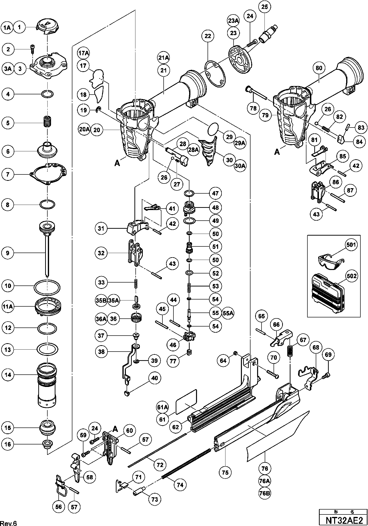 Lista de las piezas de repuesto de Hikoki NT32AE2