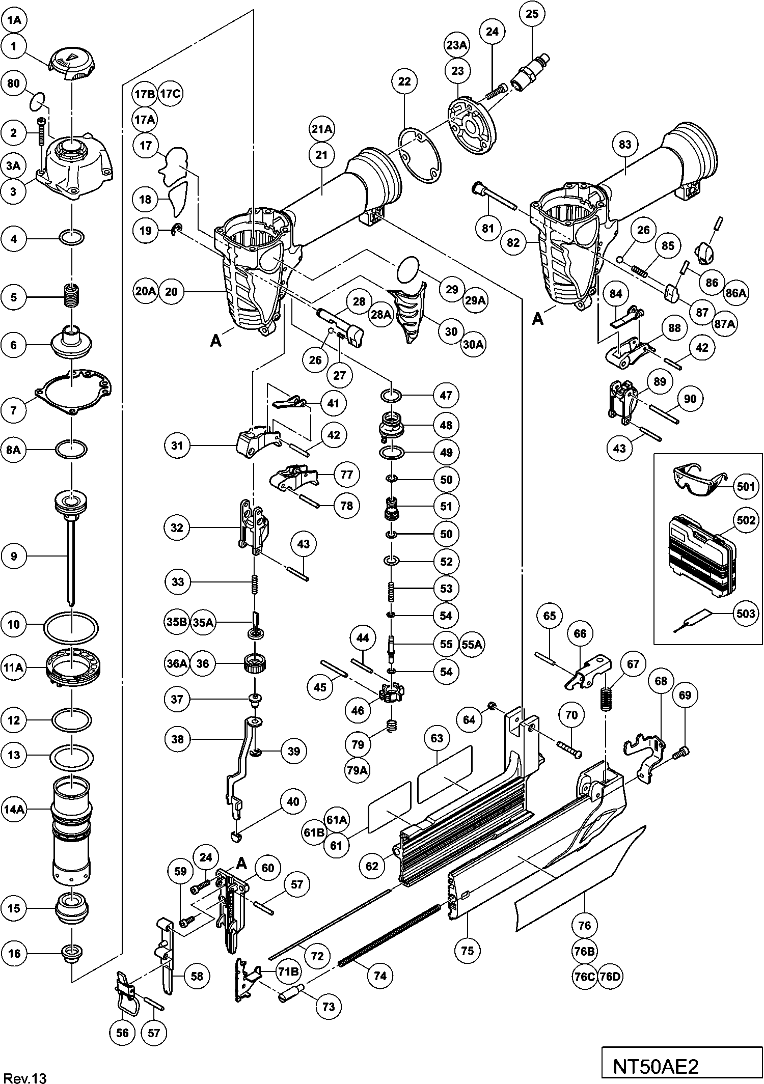Lista de las piezas de repuesto de Hikoki NT50AE2