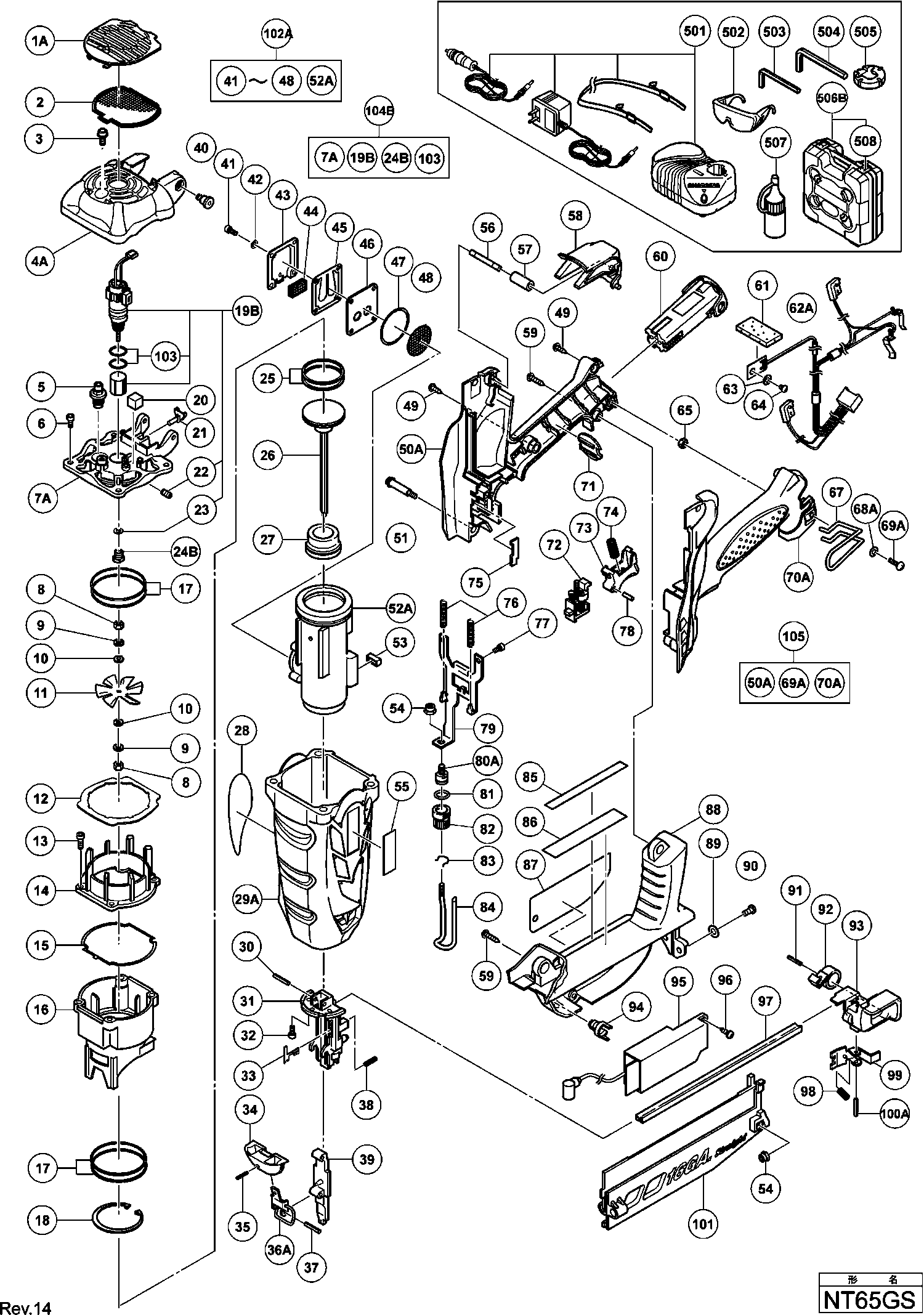 Lista de las piezas de repuesto de Hikoki NT65GS