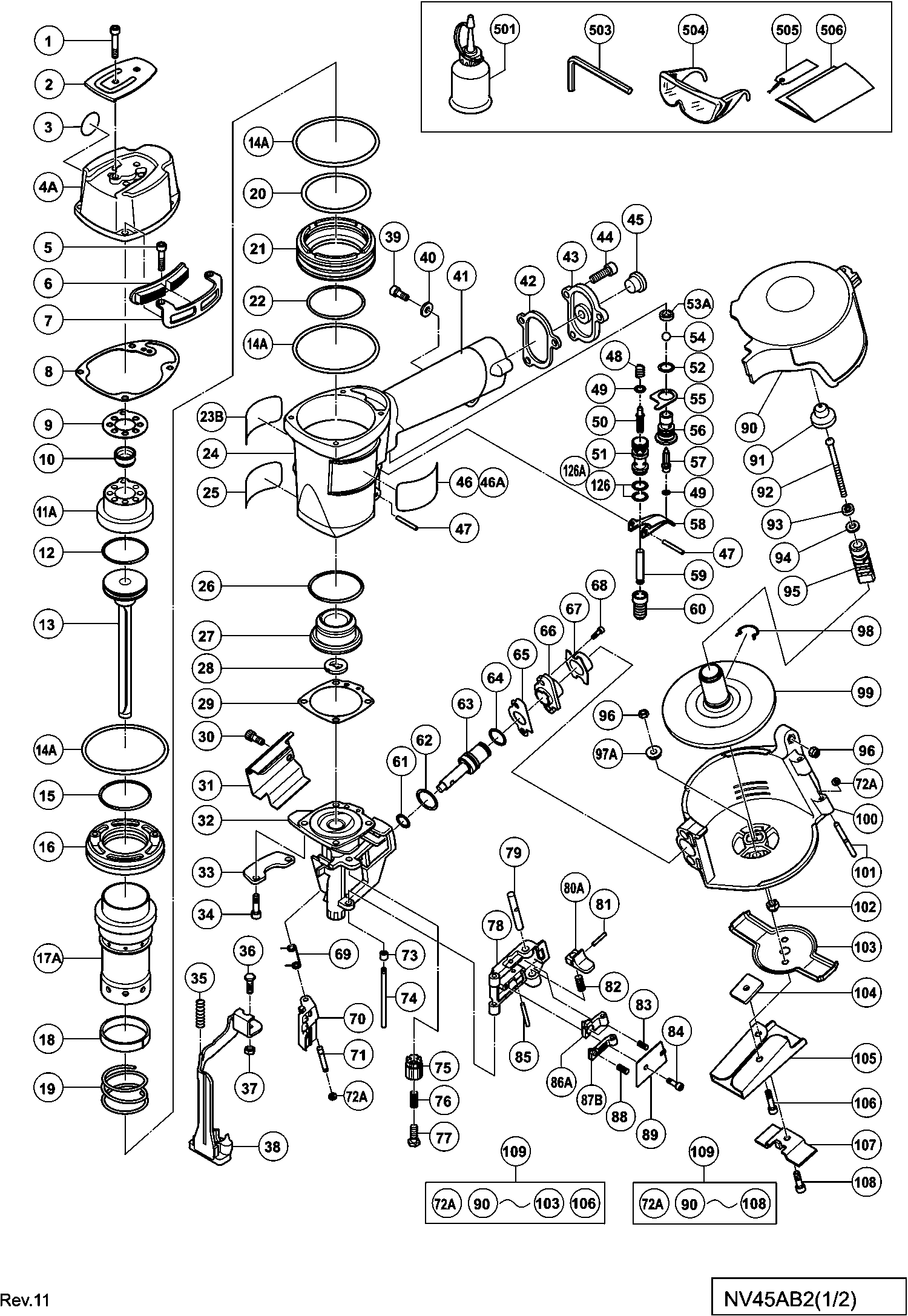 Lista de las piezas de repuesto de Hikoki NV45AB2