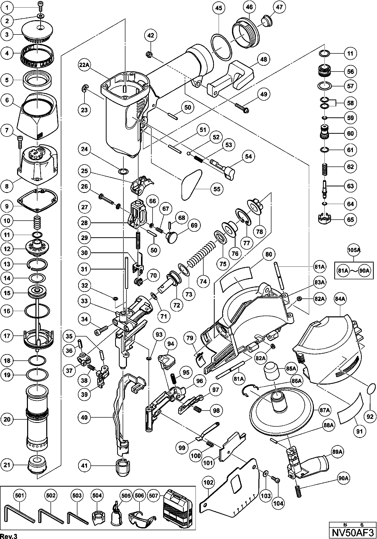 Lista de las piezas de repuesto de Hikoki NV50AF3