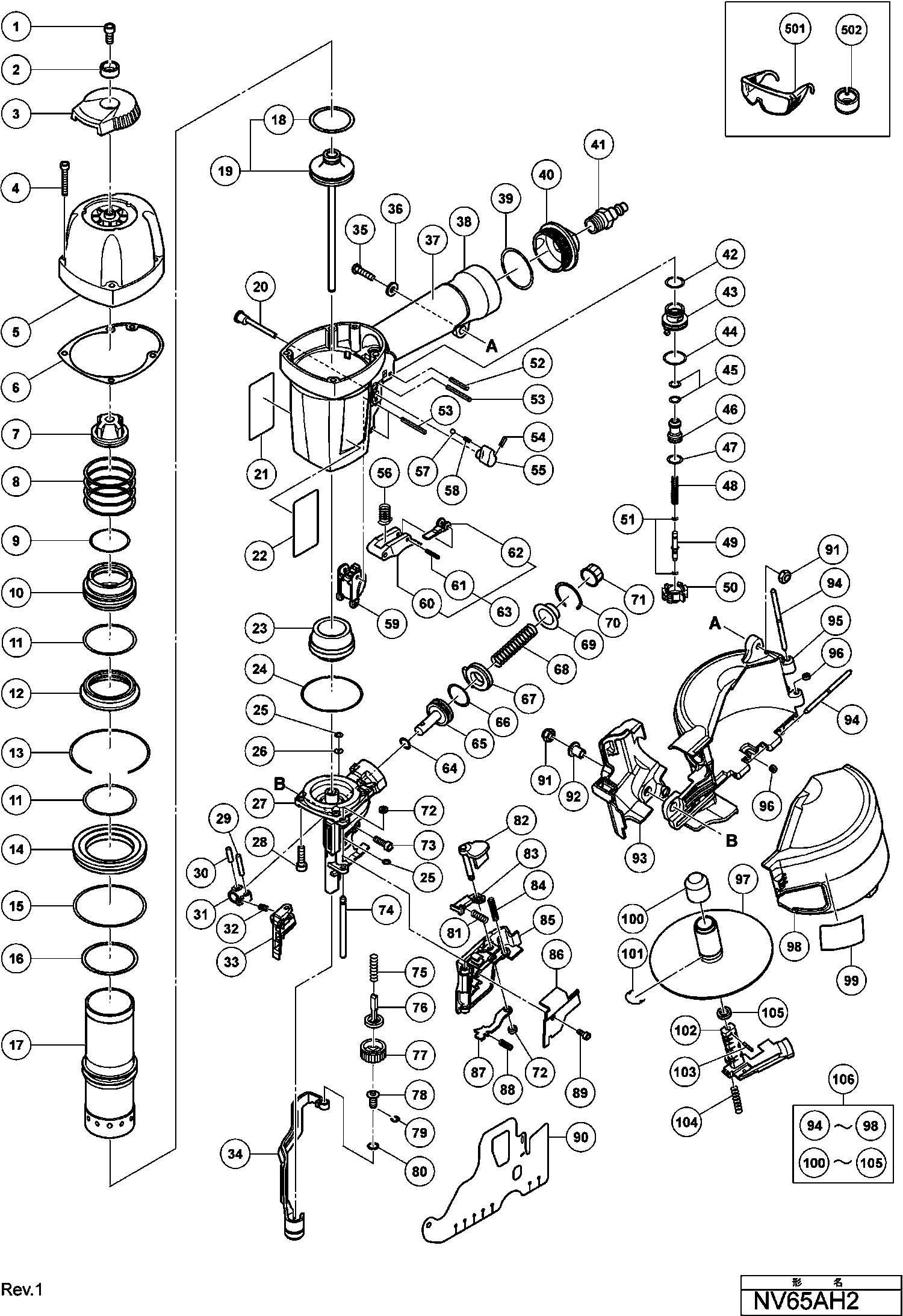 Lista de las piezas de repuesto de Hikoki NV65AH2
