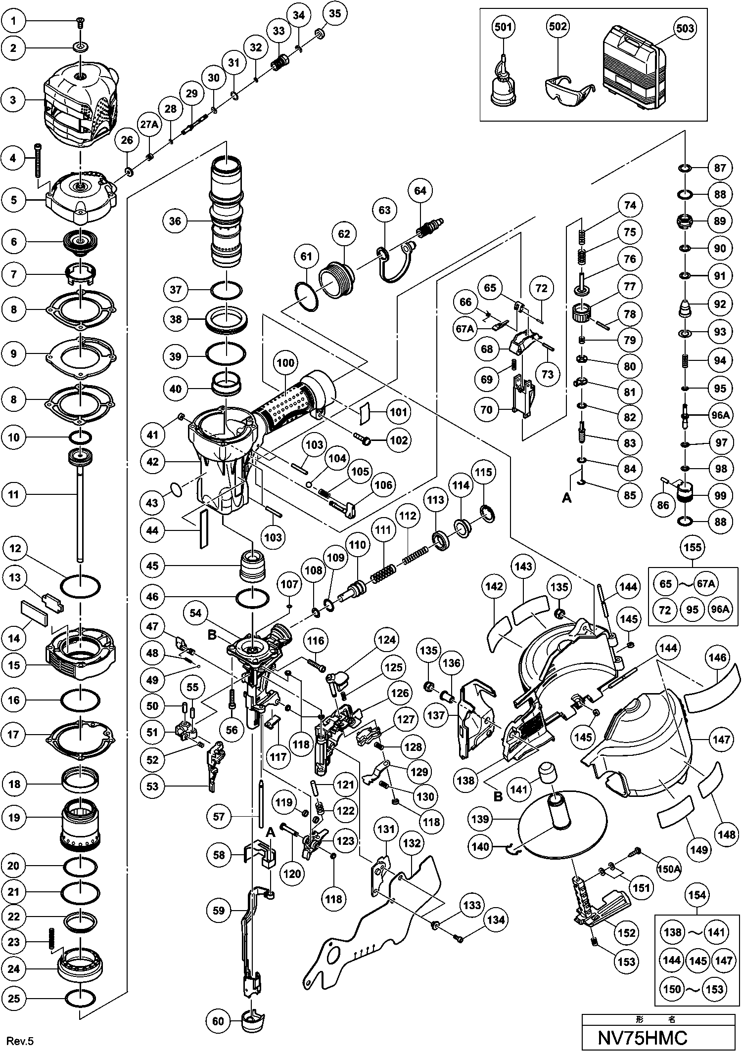 Lista de las piezas de repuesto de Hikoki NV75HMC