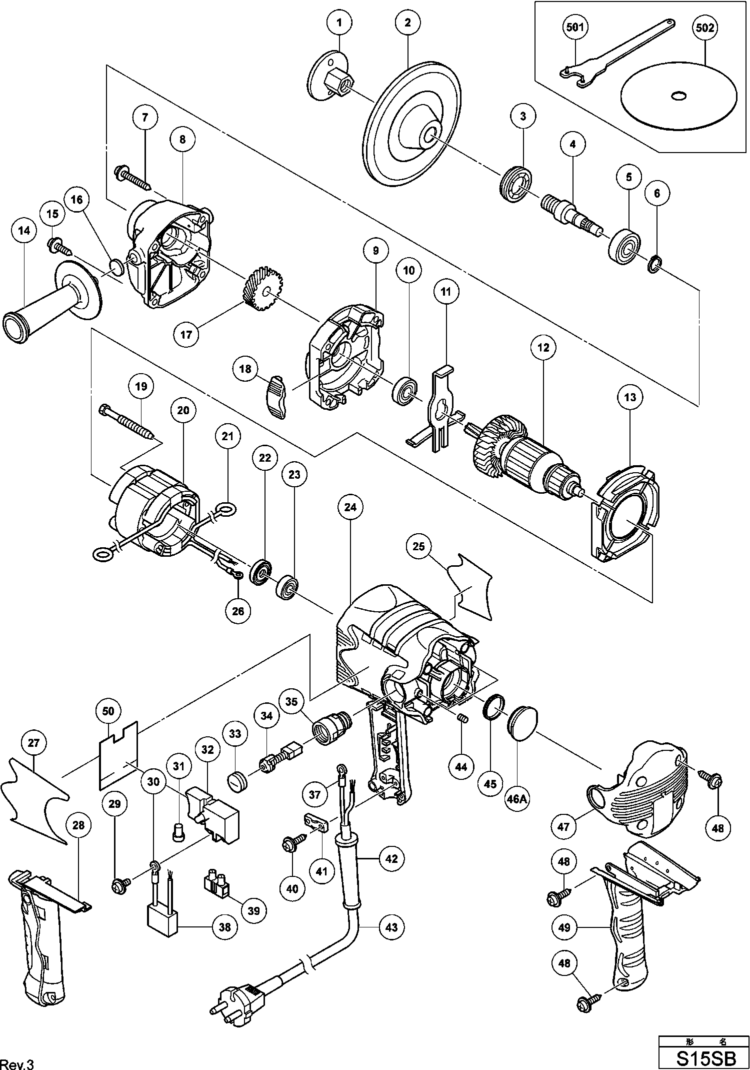 Aquí encontrará todas las piezas y dibujos técnicos disponibles de 'Hikoki S15SB'. Desde aquí podrá pedir todas las piezas deseadas directamente. Para muchas piezas de repuesto, es necesario pasar un pedido al fabricante. Dependiendo de la marca, el plazo de entrega puede variar entre una y cuatro semanas. Toda la información que tenemos está en nuestro sitio web. No podremos aconsejarle sobre lo que necesita hasta que entregue la máquina para su reparación. Tenga en cuenta lo siguiente a la hora de cursar su pedido: