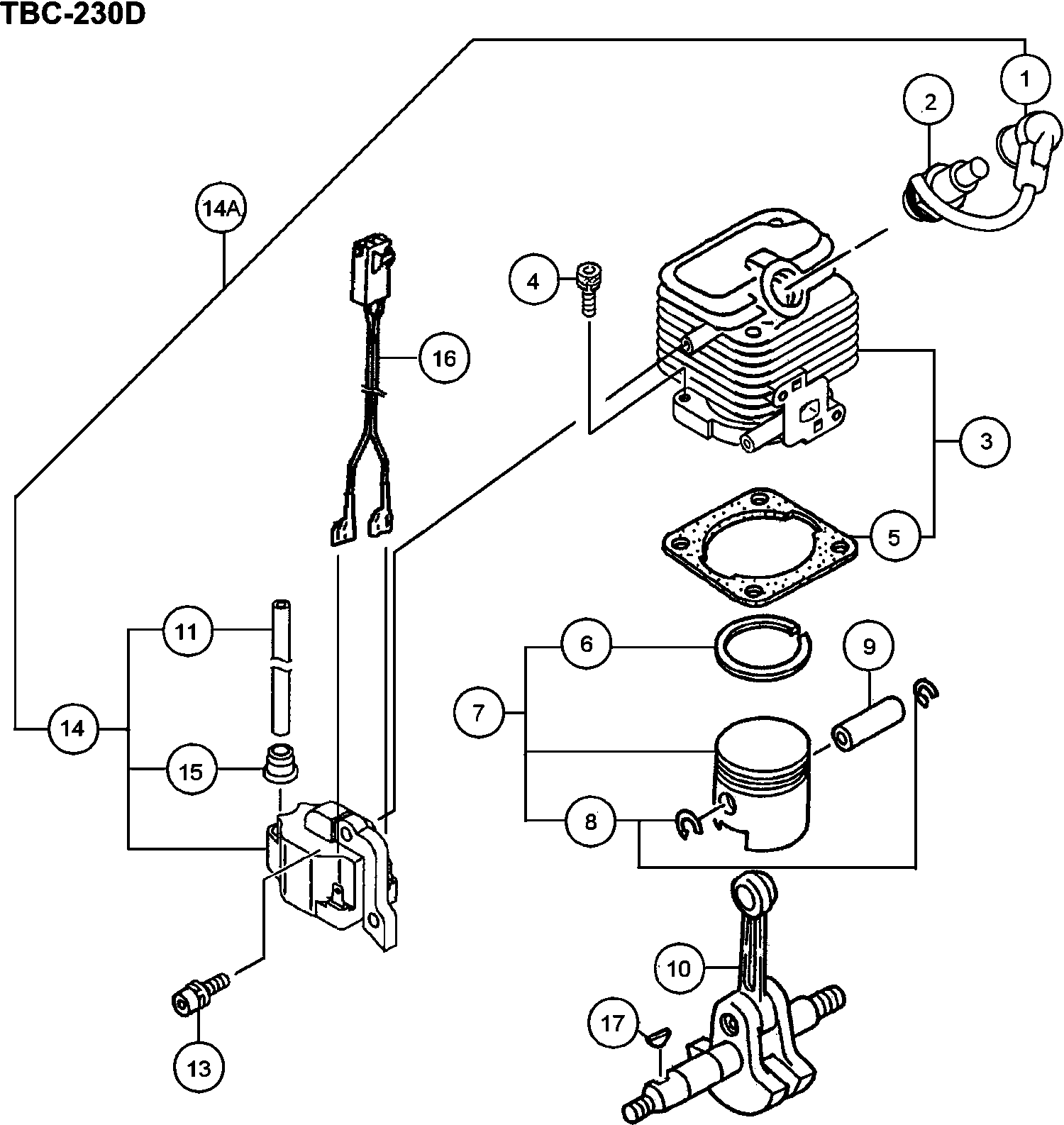 Lista de las piezas de repuesto de Hikoki TBC-230D
