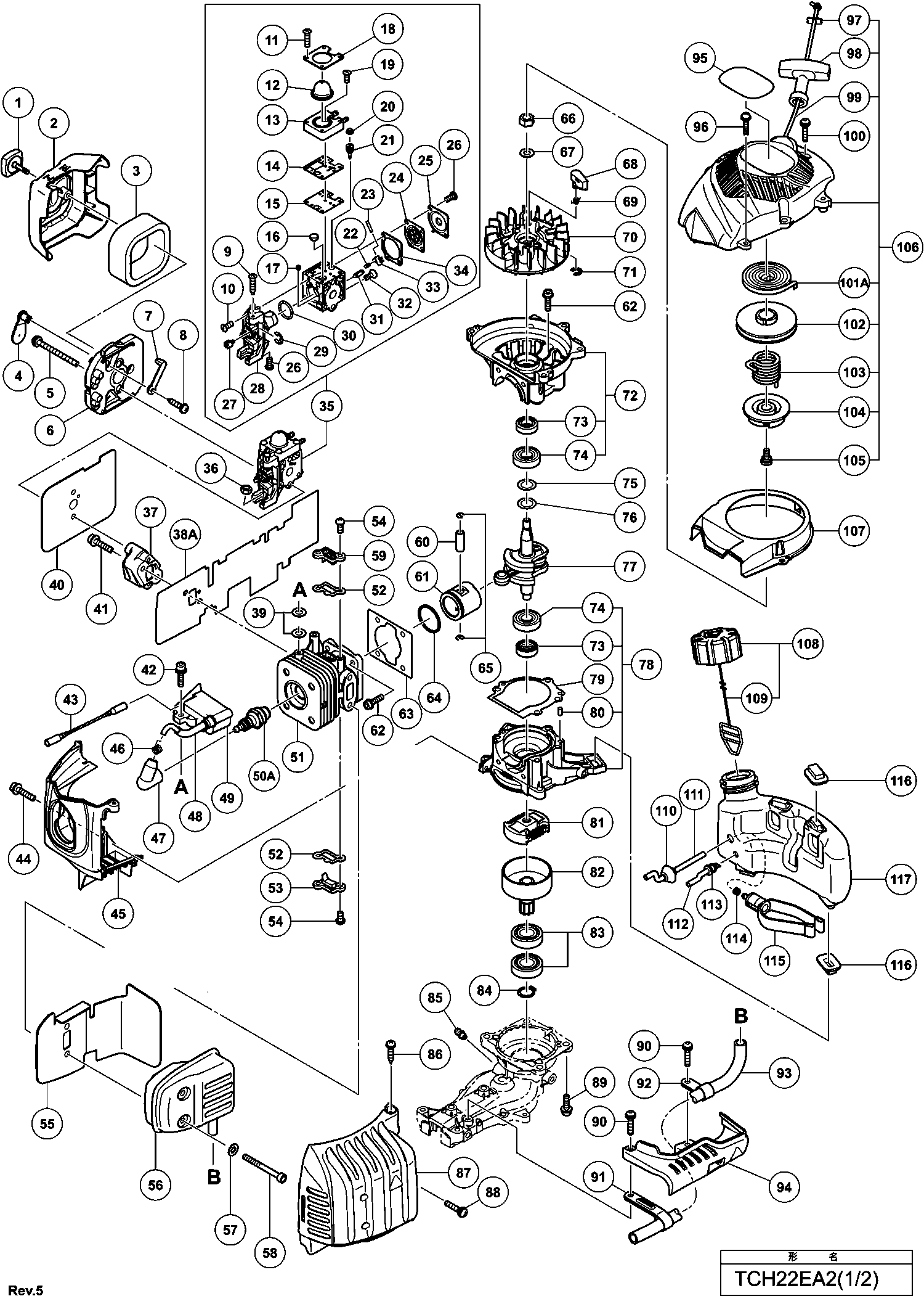 Lista de las piezas de repuesto de Hikoki TCH22EA2