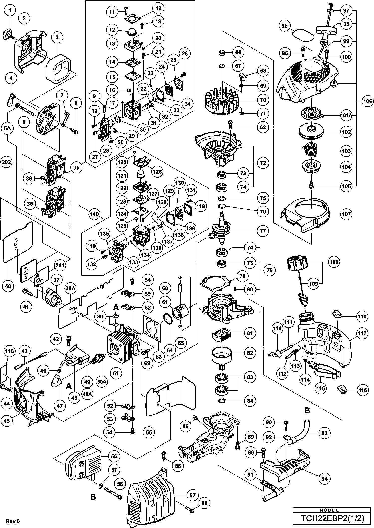 Lista de las piezas de repuesto de Hikoki TCH22EBP2