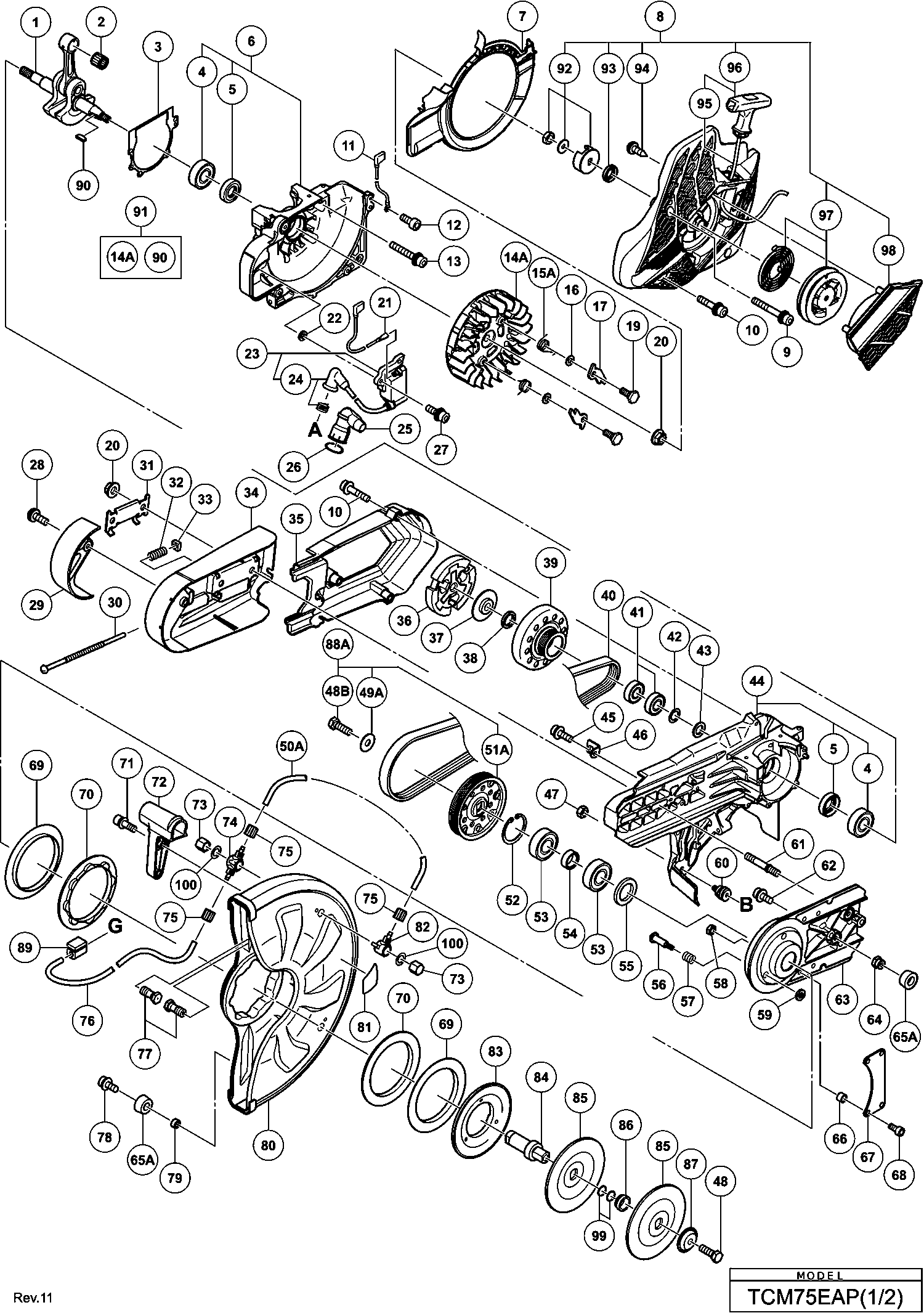 Lista de las piezas de repuesto de Hikoki TCM75EAP
