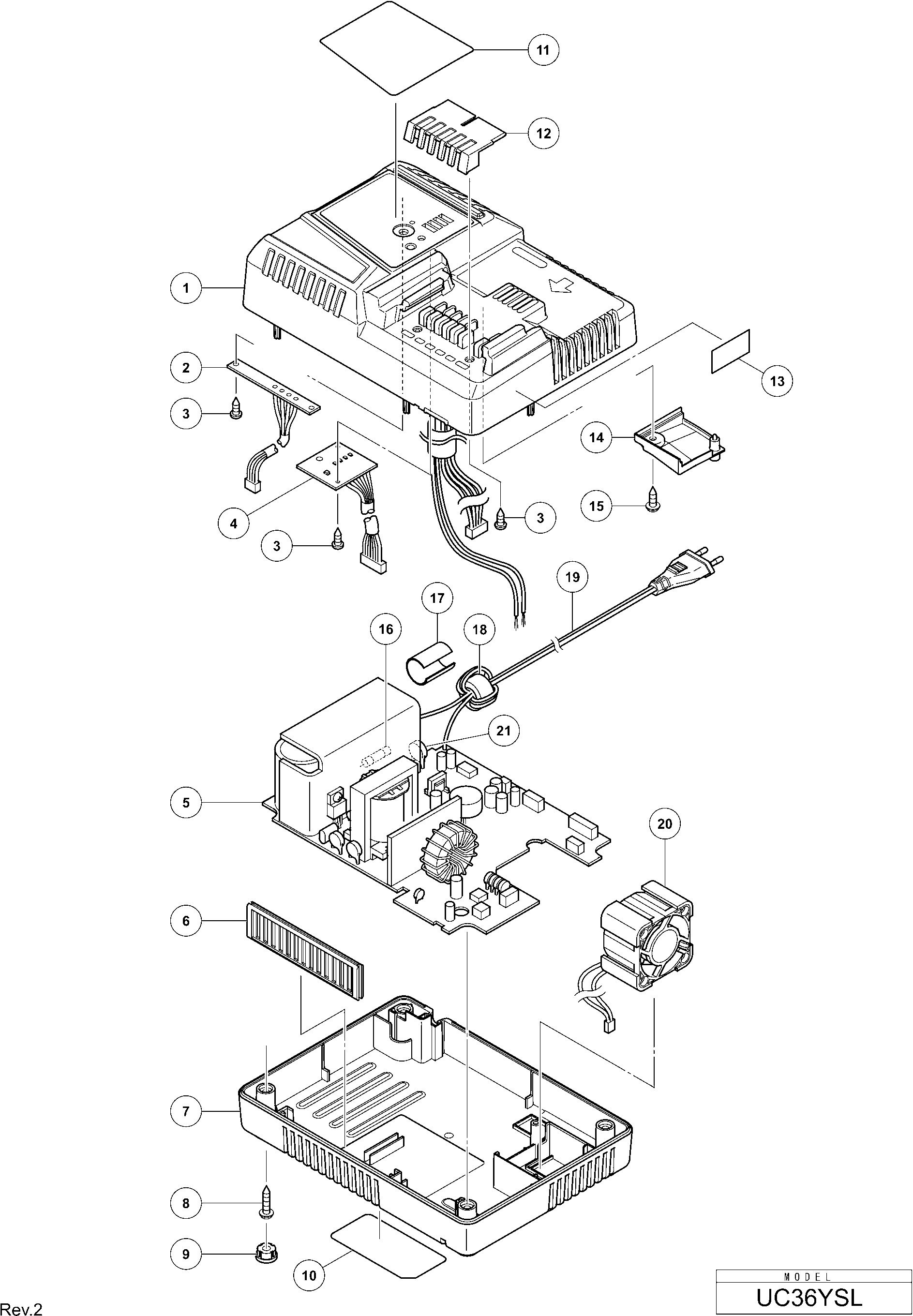 Dibujo técnico de los/las Hikoki UC36YSL