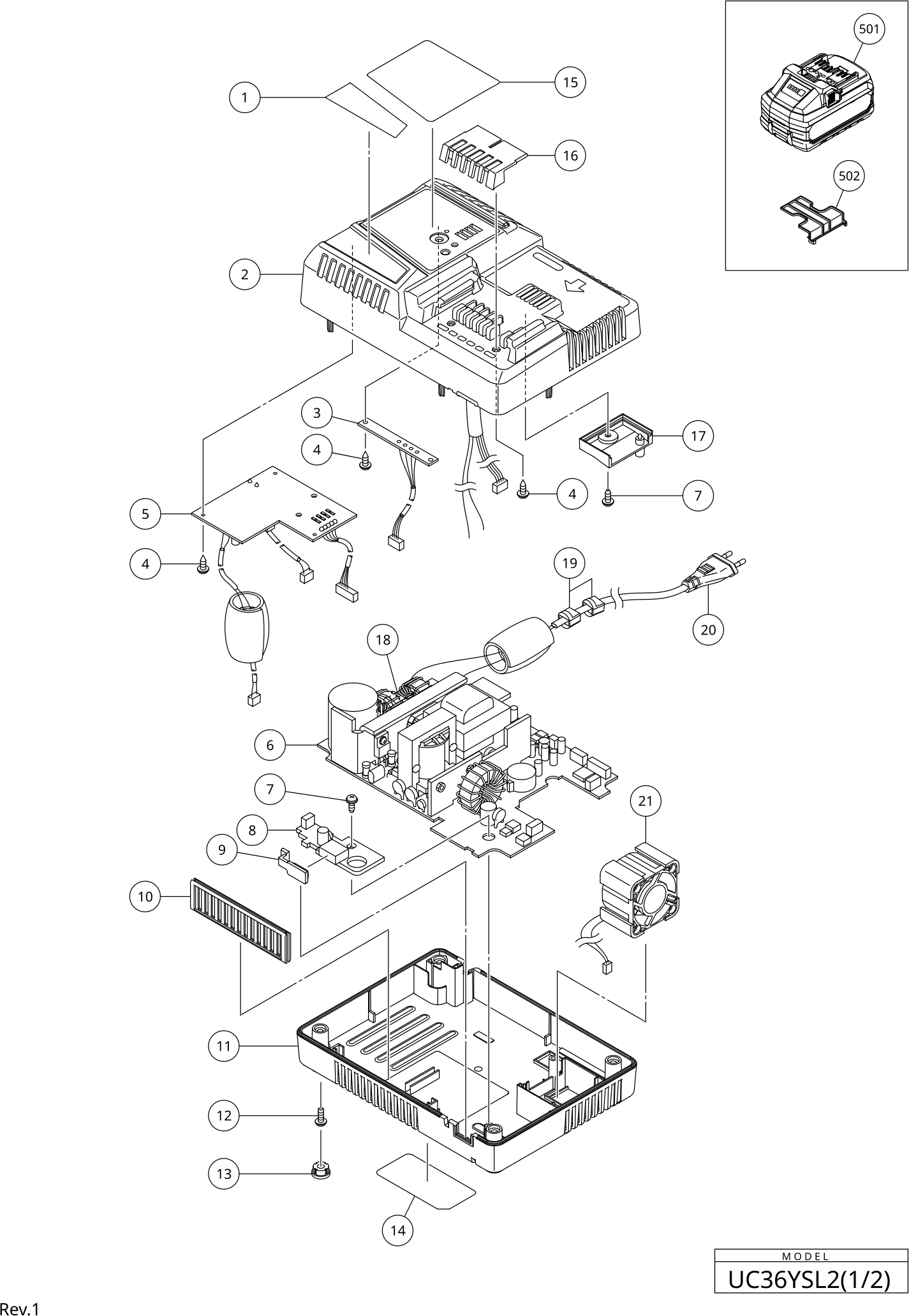 Dibujo técnico de los/las Hikoki UC36YSL2