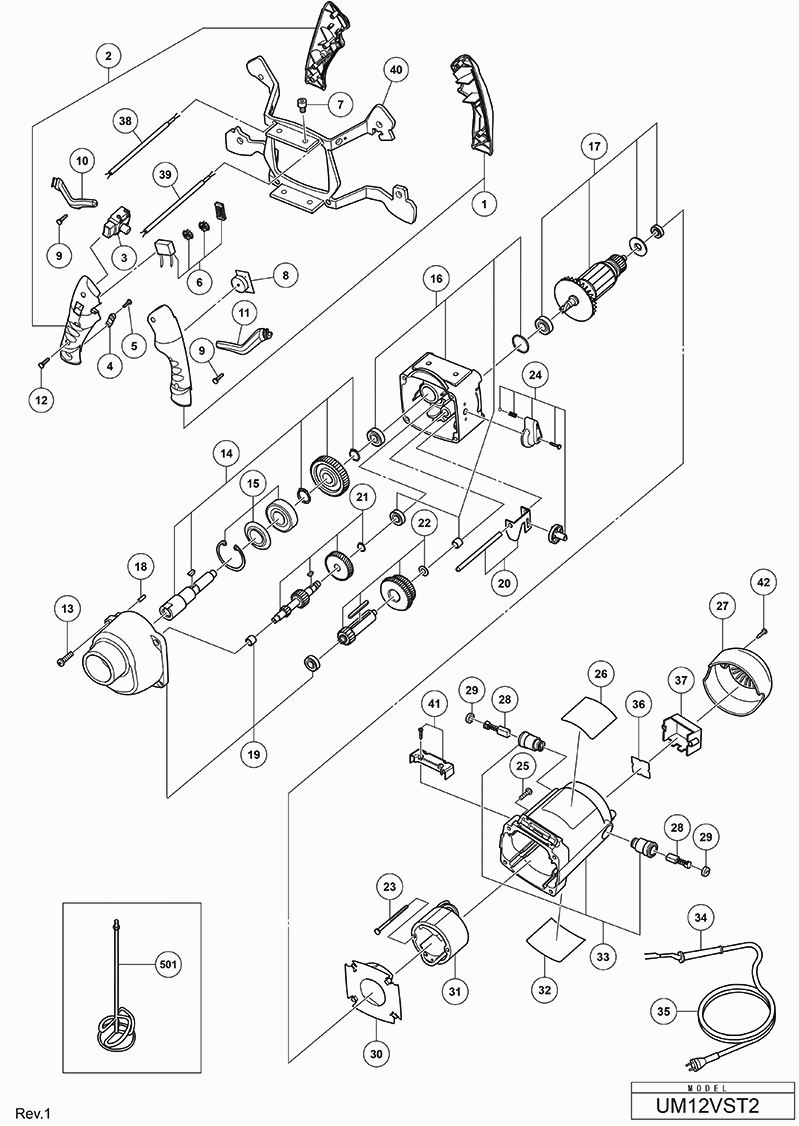 Lista de las piezas de repuesto de Hikoki UM12VST2UAZ