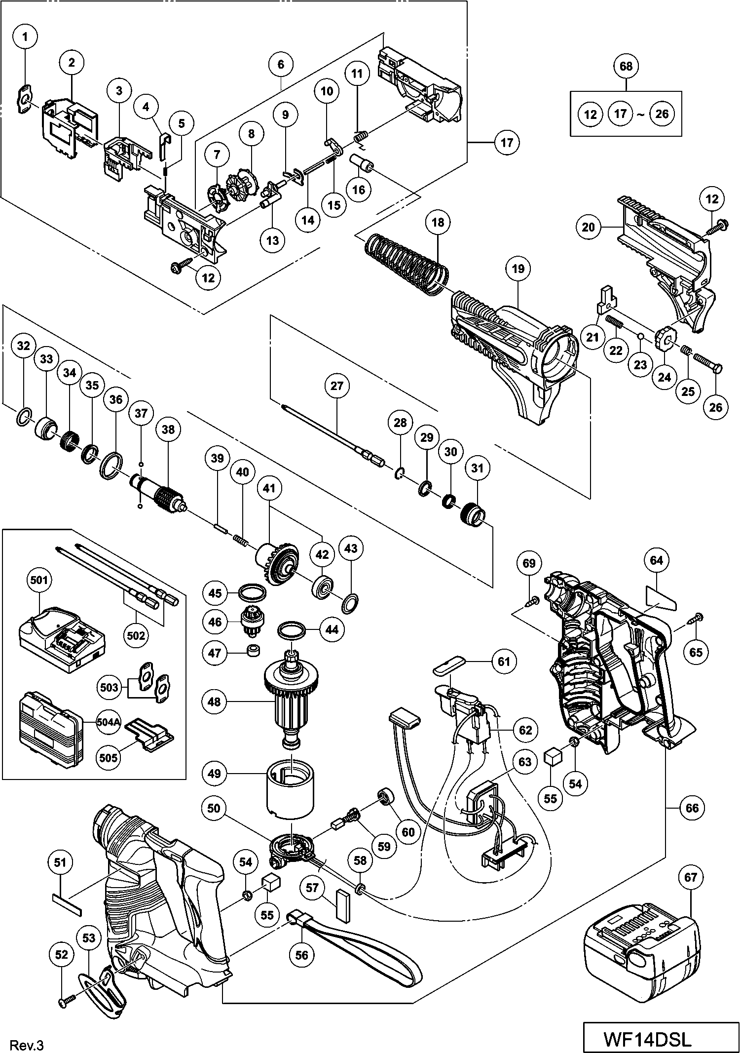 Lista de las piezas de repuesto de Hikoki WF14DSL