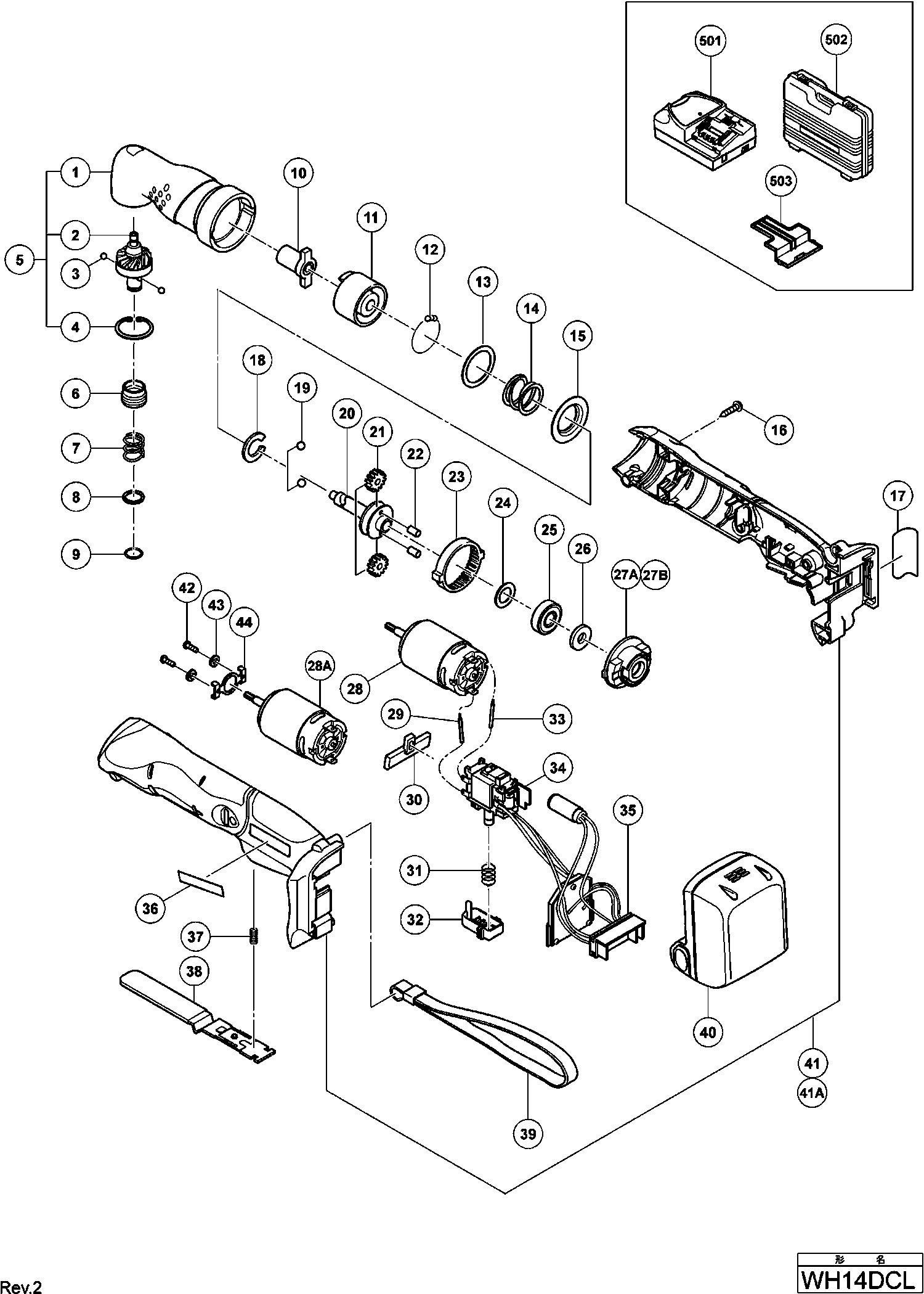 Lista de las piezas de repuesto de Hikoki WH14DCL
