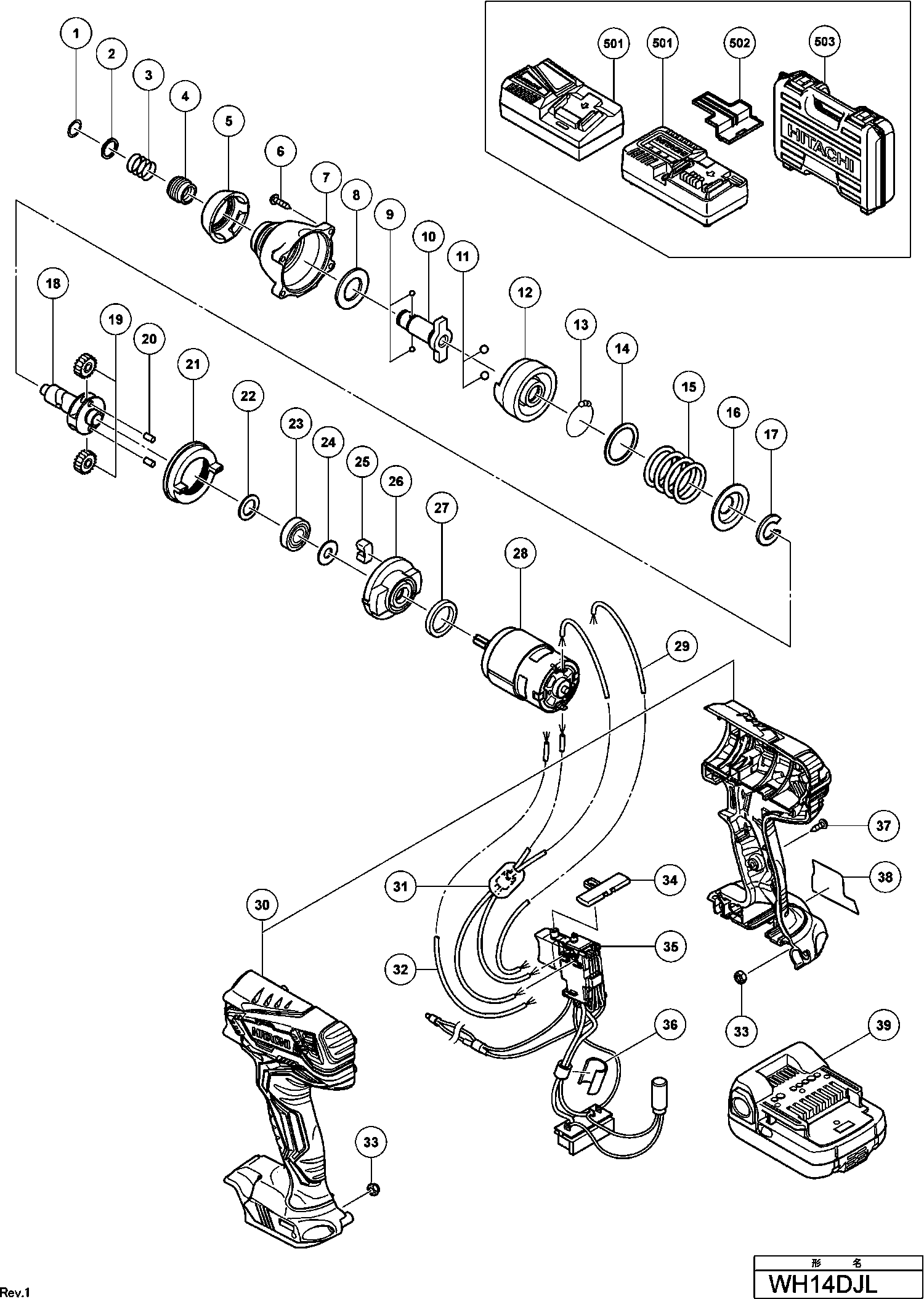 Lista de las piezas de repuesto de Hikoki WH14DJL