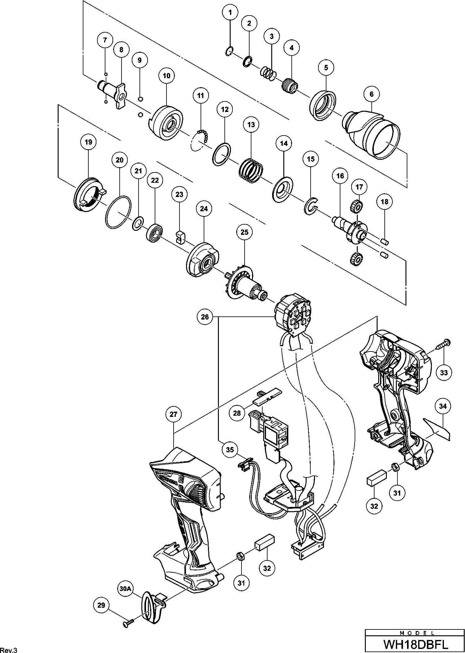 Lista de las piezas de repuesto de Hikoki WH18DBFL