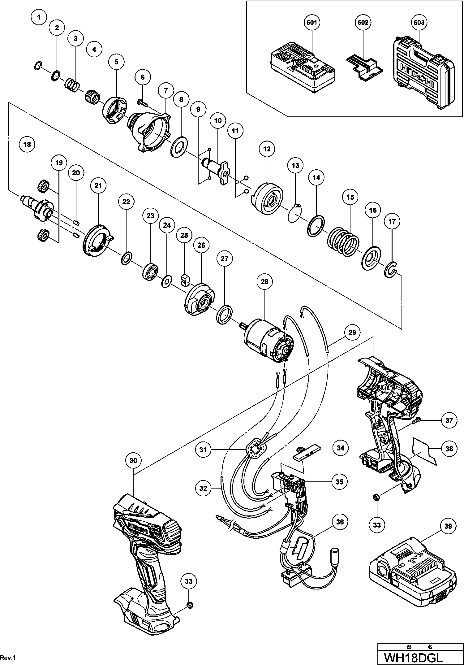 Lista de las piezas de repuesto de Hikoki WH18DGL