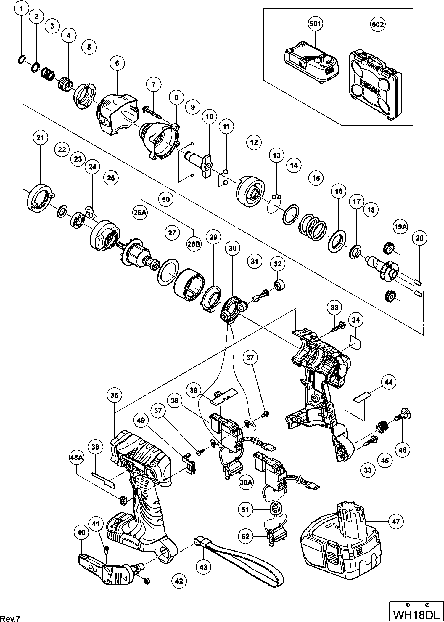 Lista de las piezas de repuesto de Hikoki WH18DL