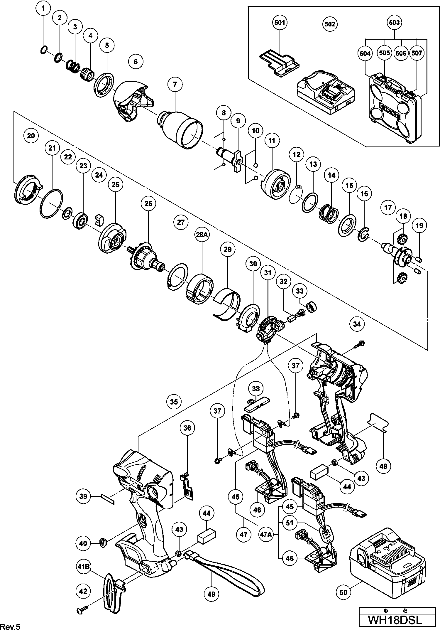 Lista de las piezas de repuesto de Hikoki WH18DSL