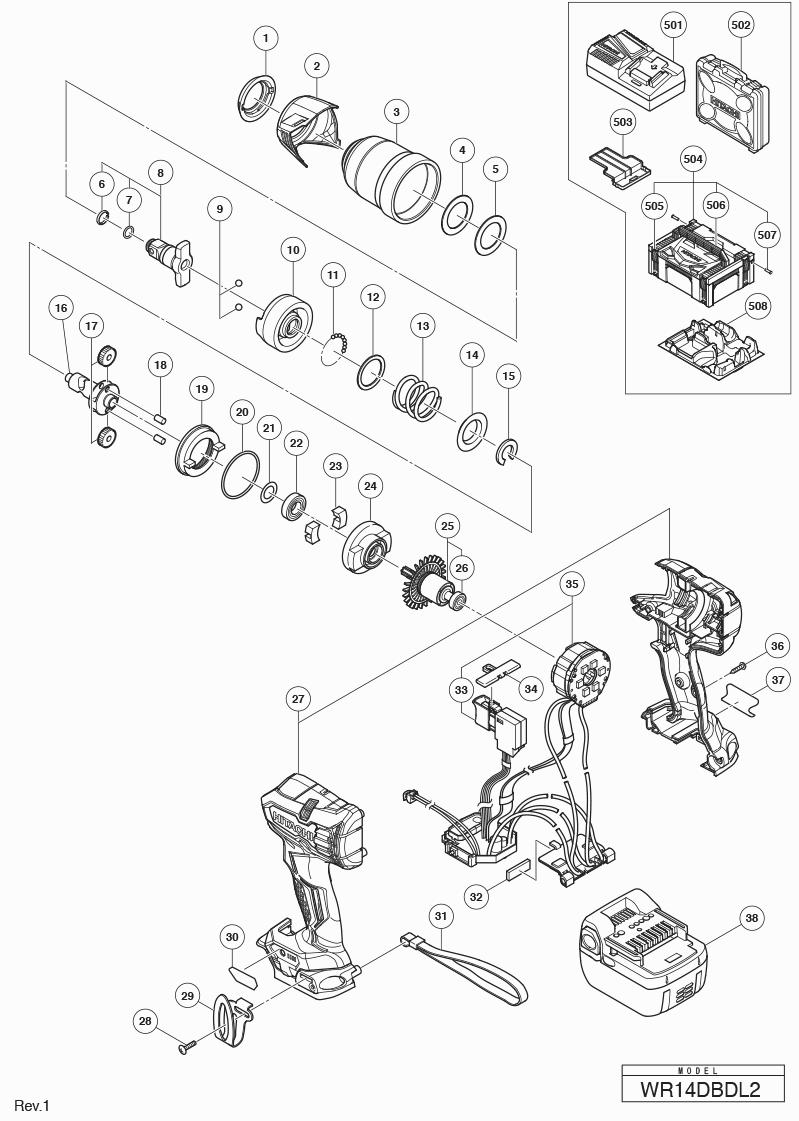 Lista de las piezas de repuesto de Hikoki WR14DBDL2