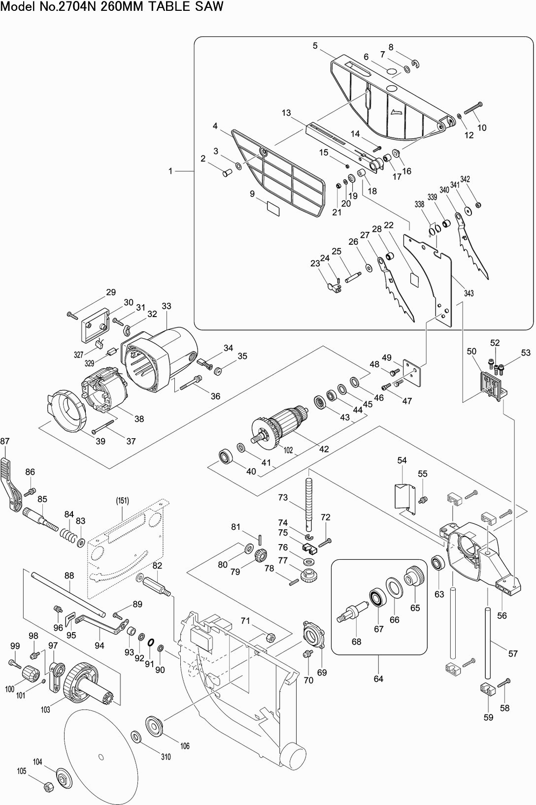 Dibujo técnico de los/las Makita 2704N