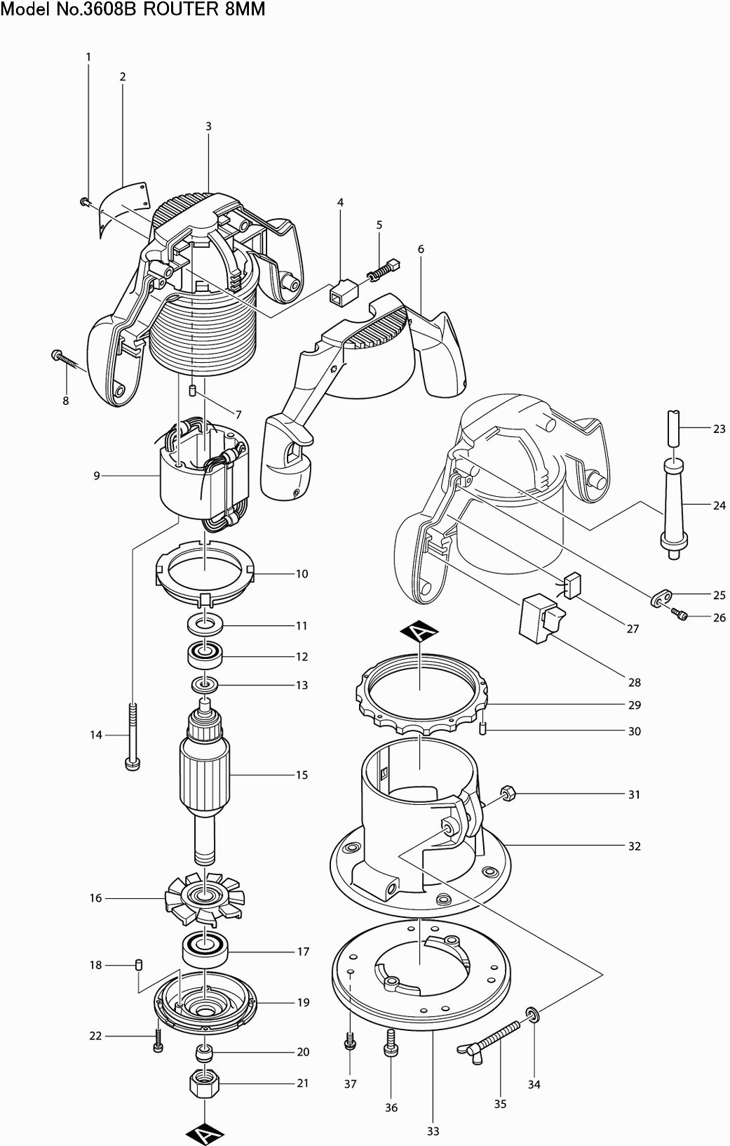 Lista de las piezas de repuesto de Makita 3608B