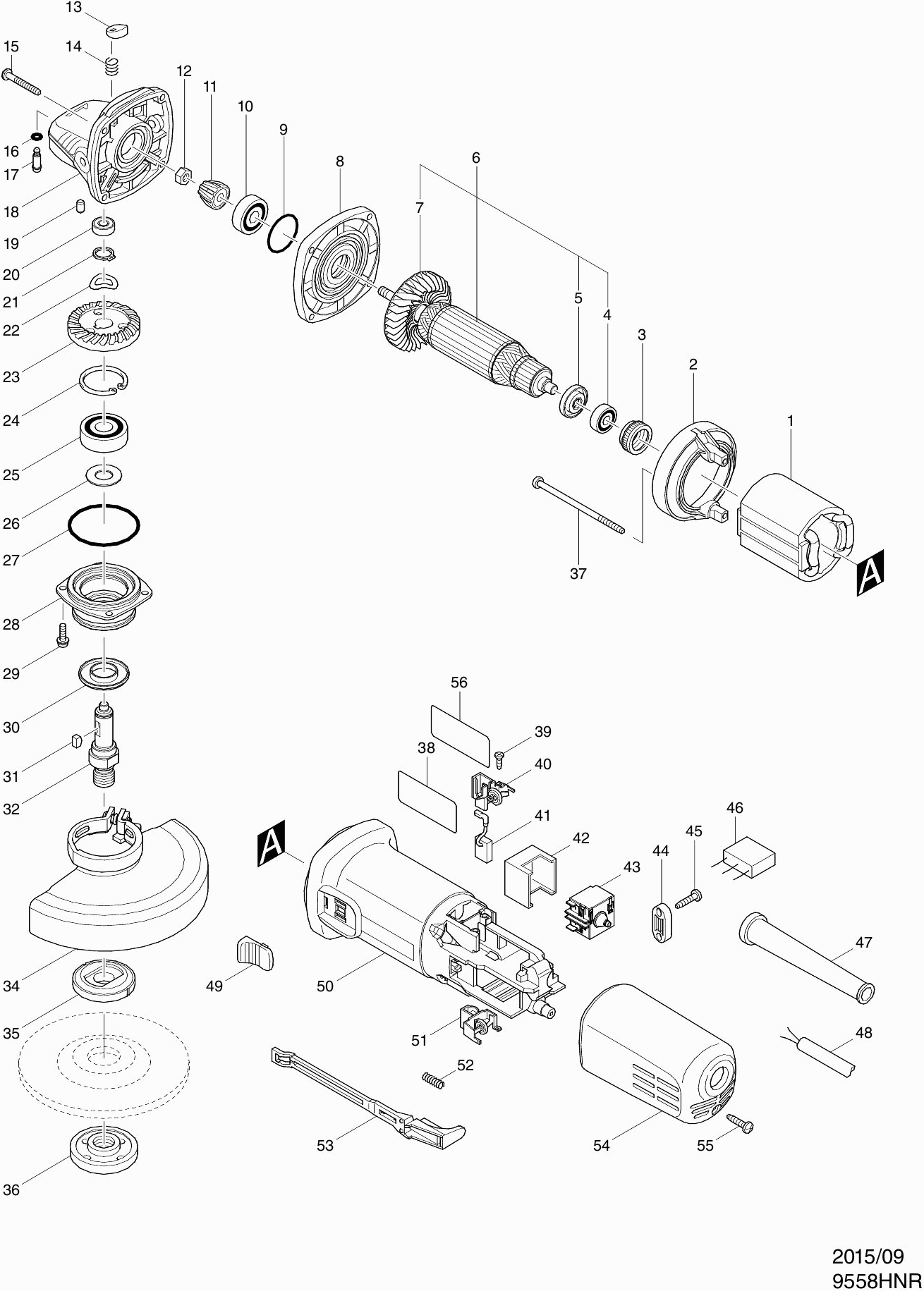 Dibujo técnico de los/las Makita 9558HN