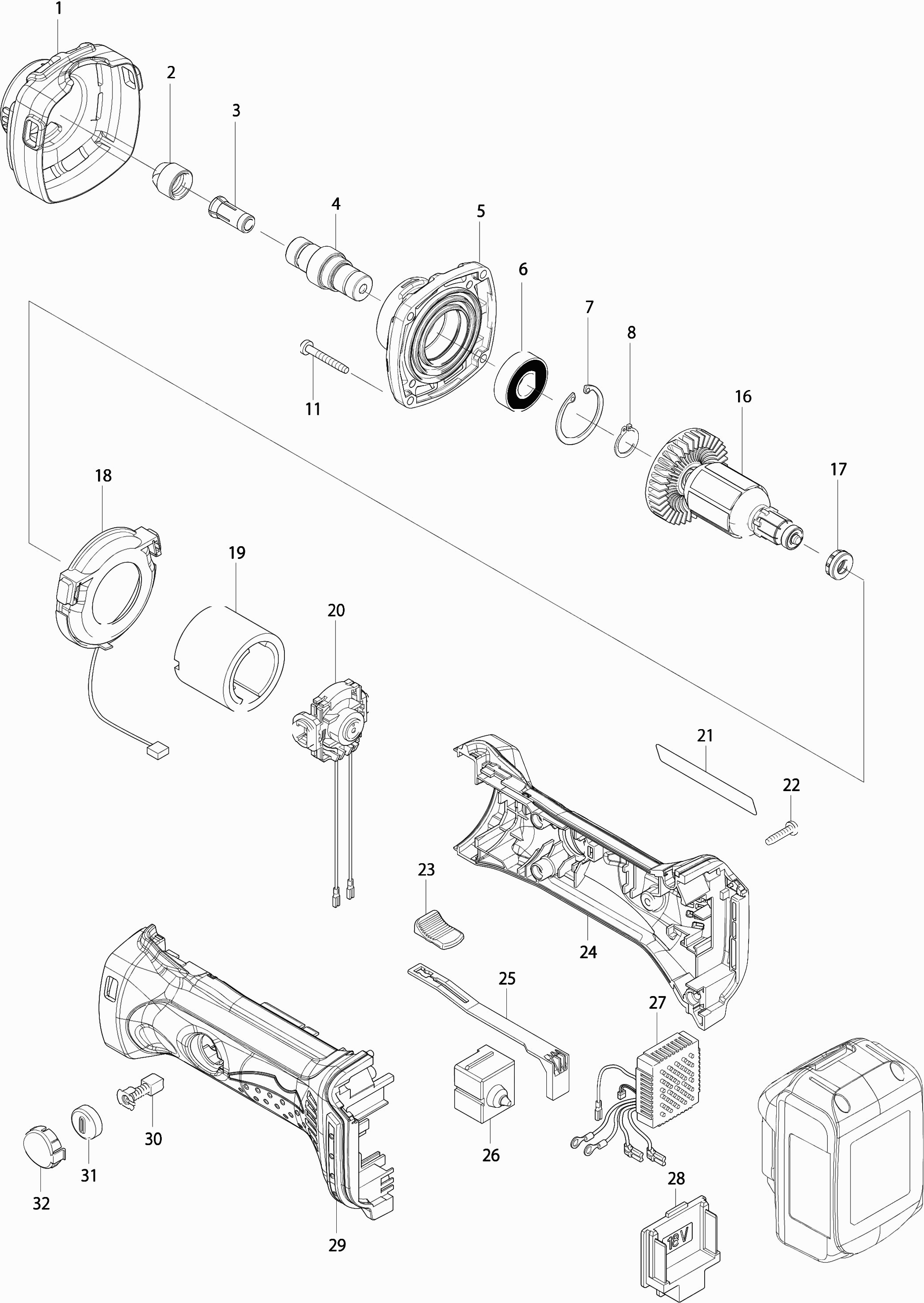 Dibujo técnico de los/las Makita BGD801RFE