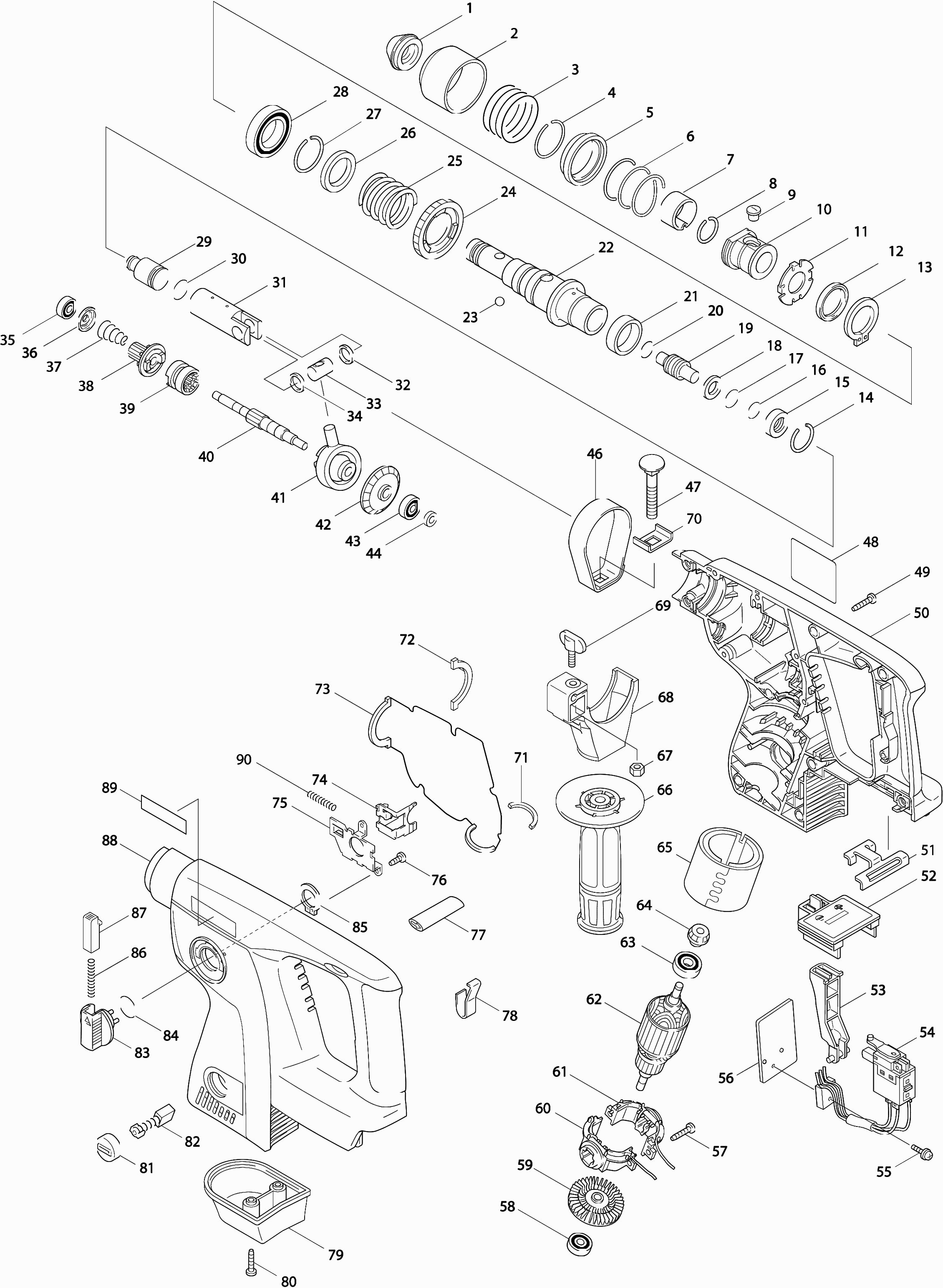Lista de las piezas de repuesto de Makita BHR200