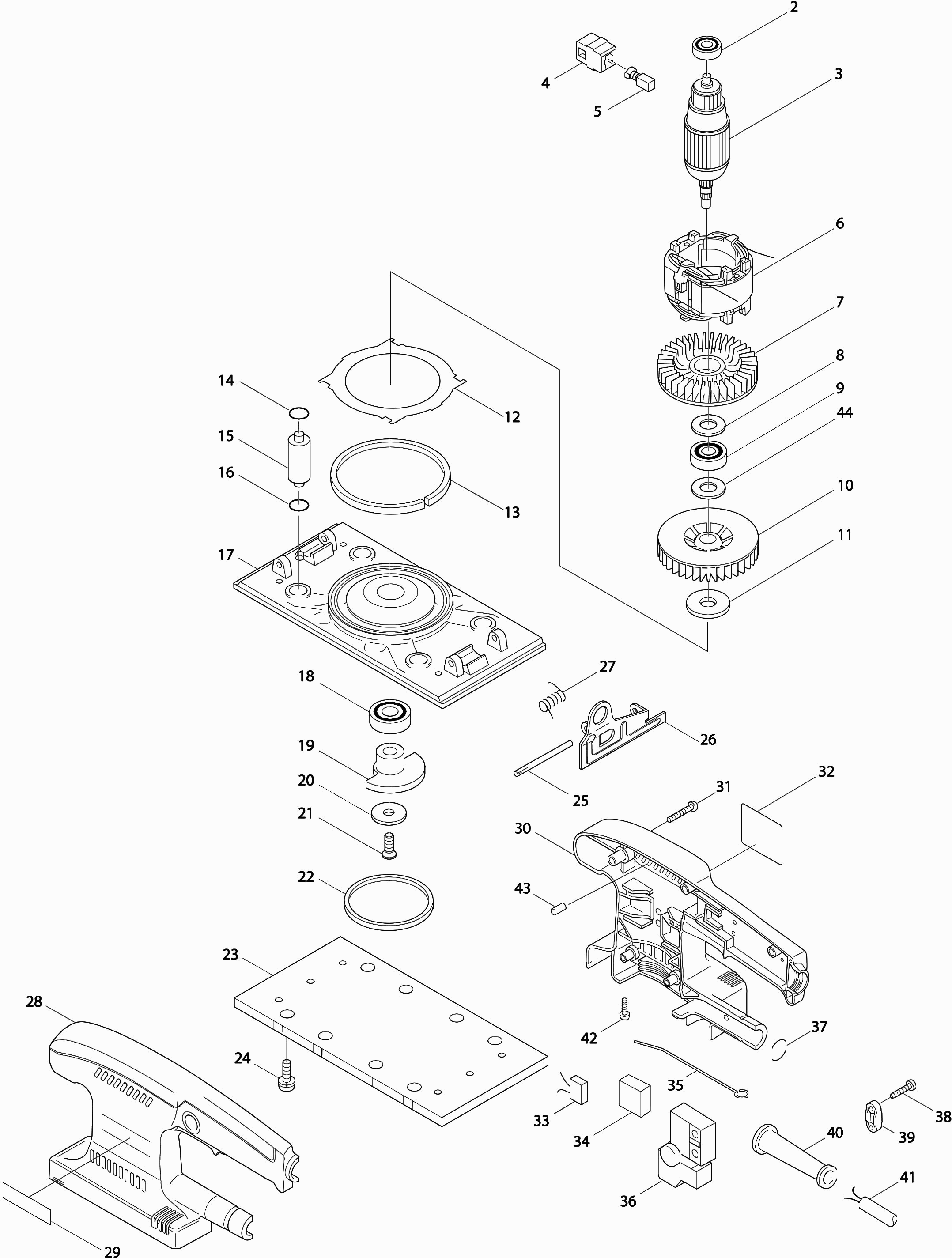 Aquí encontrará todas las piezas y dibujos técnicos disponibles de 'Makita BO3700'. Desde aquí podrá pedir todas las piezas deseadas directamente. Para muchas piezas de repuesto, es necesario pasar un pedido al fabricante. Dependiendo de la marca, el plazo de entrega puede variar entre una y cuatro semanas. Toda la información que tenemos está en nuestro sitio web. No podremos aconsejarle sobre lo que necesita hasta que entregue la máquina para su reparación. Tenga en cuenta lo siguiente a la hora de cursar su pedido: