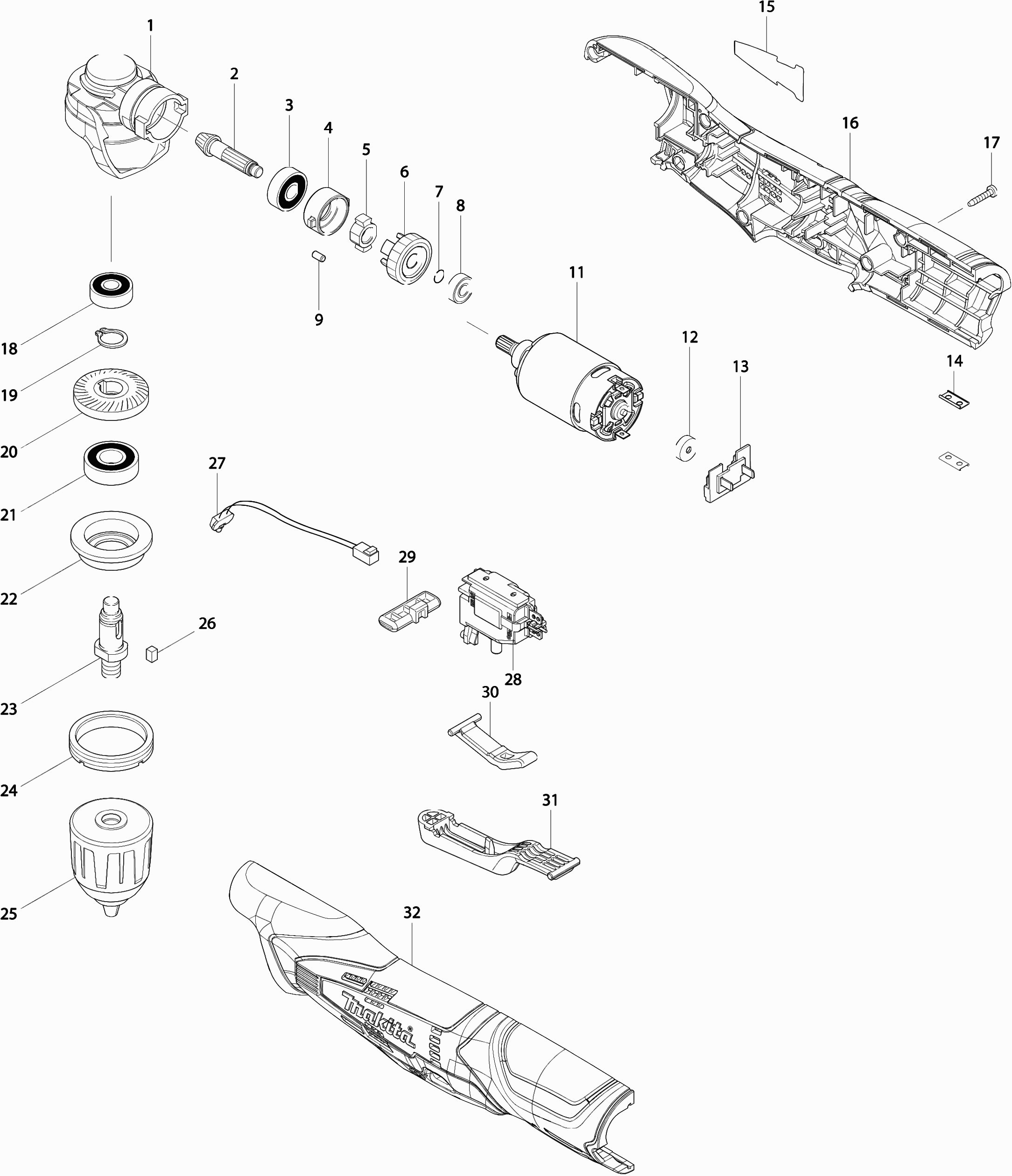 Aquí encontrará todas las piezas y dibujos técnicos disponibles de 'Makita DA331DWJ'. Desde aquí podrá pedir todas las piezas deseadas directamente. Para muchas piezas de repuesto, es necesario pasar un pedido al fabricante. Dependiendo de la marca, el plazo de entrega puede variar entre una y cuatro semanas. Toda la información que tenemos está en nuestro sitio web. No podremos aconsejarle sobre lo que necesita hasta que entregue la máquina para su reparación. Tenga en cuenta lo siguiente a la hora de cursar su pedido: