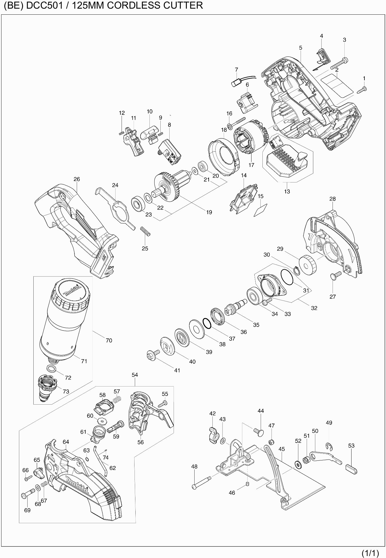 Lista de las piezas de repuesto de Makita DCC501