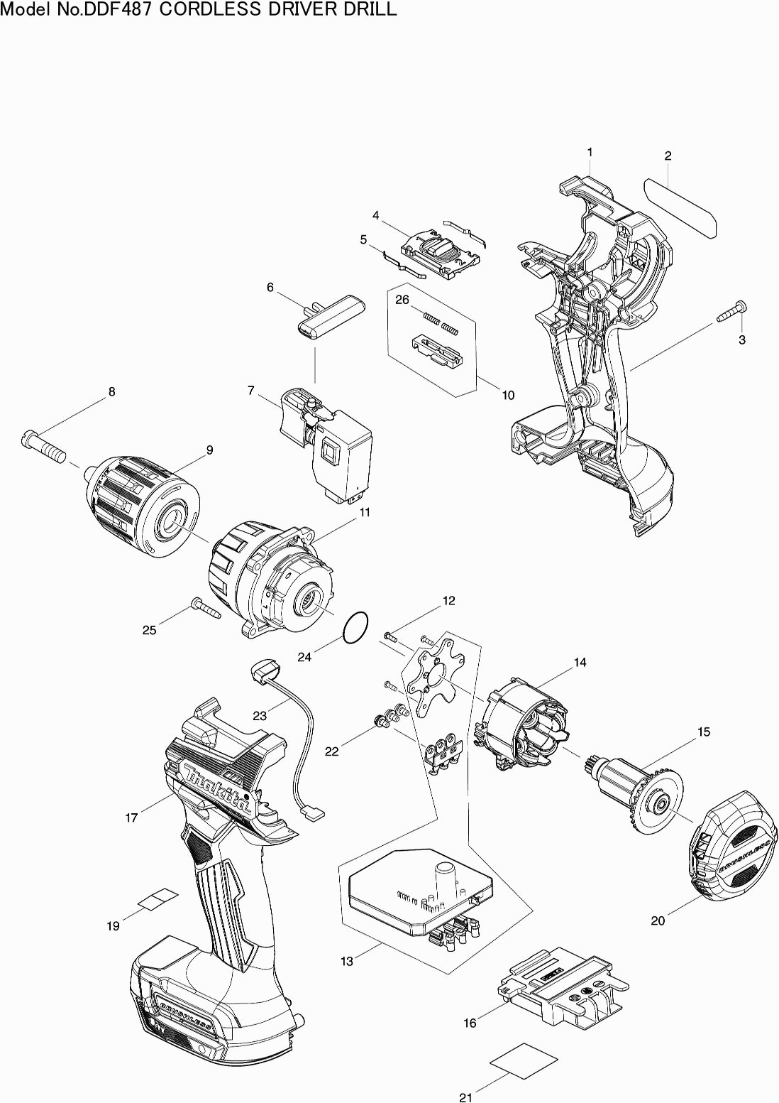 Dibujo técnico de los/las Makita DDF487