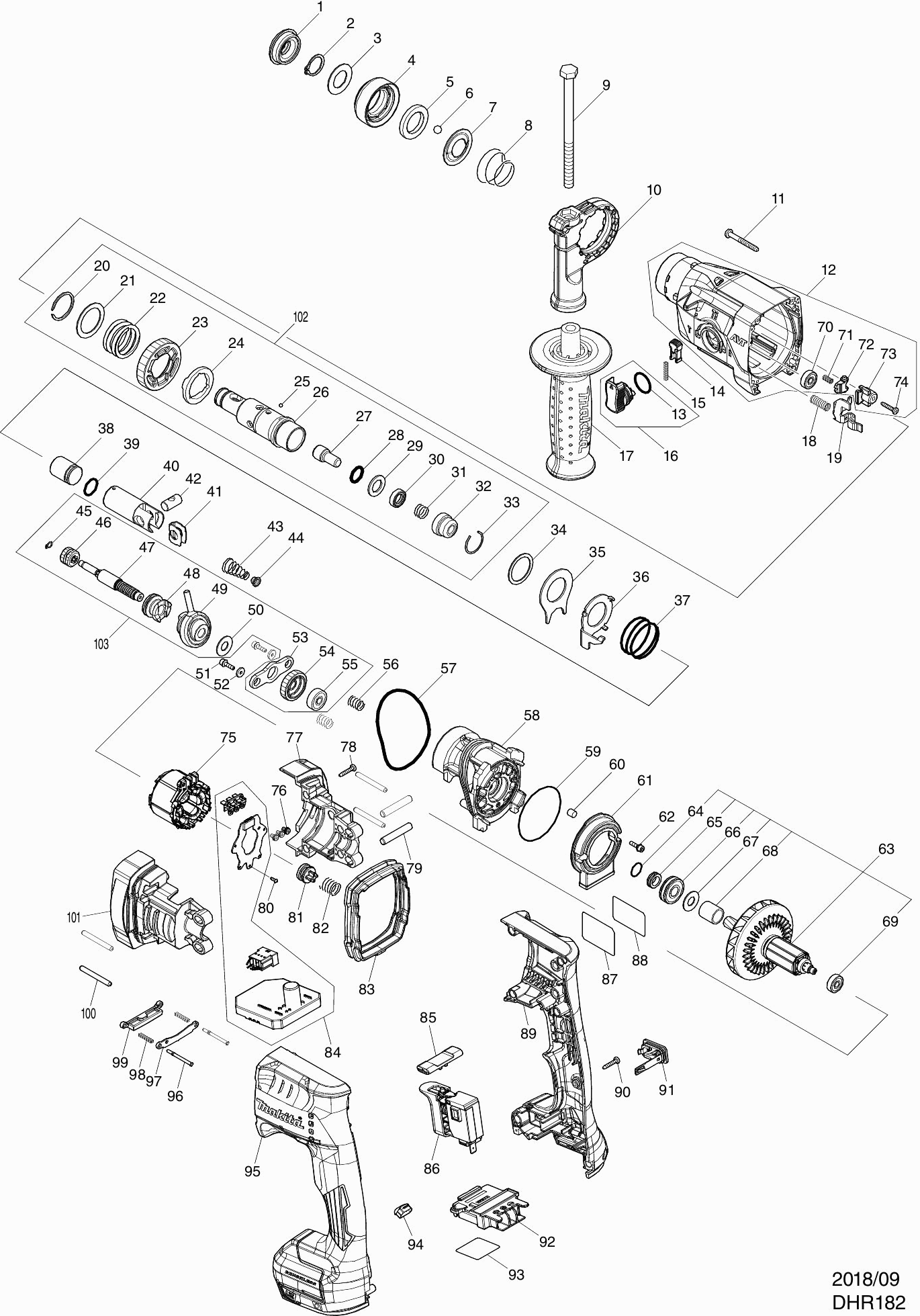Dibujo técnico de los/las Makita DHR182
